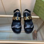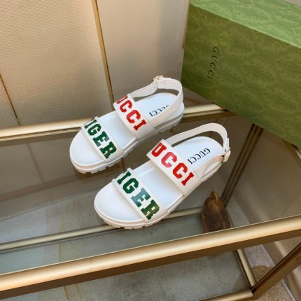 Gucci 女士老虎搭扣凉鞋黑色 GG