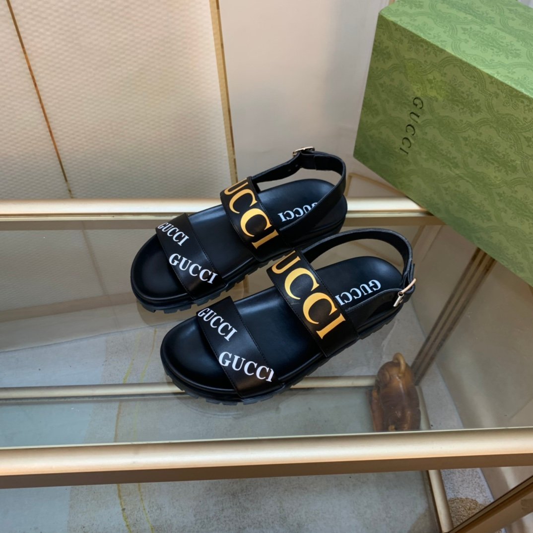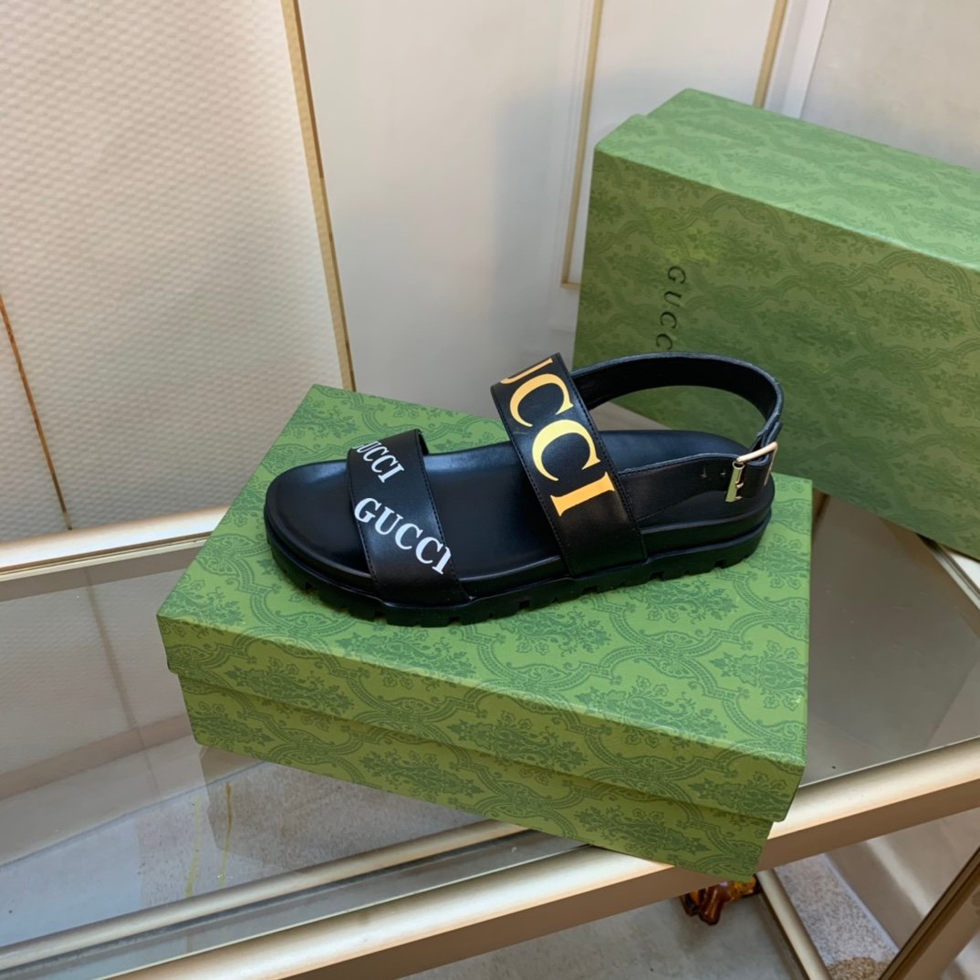 Gucci 女式老虎带扣凉鞋黑色 GG 女式