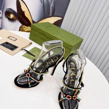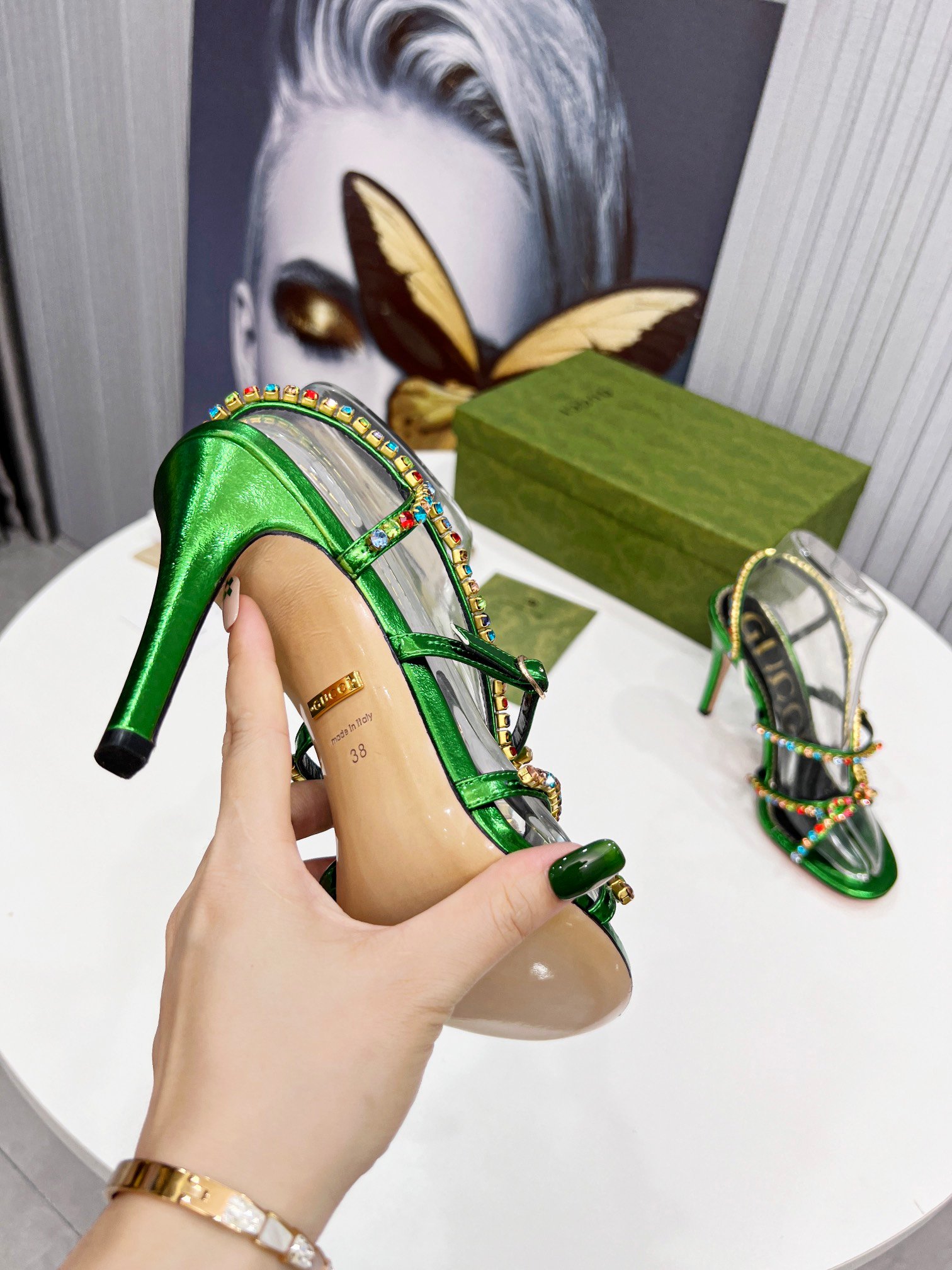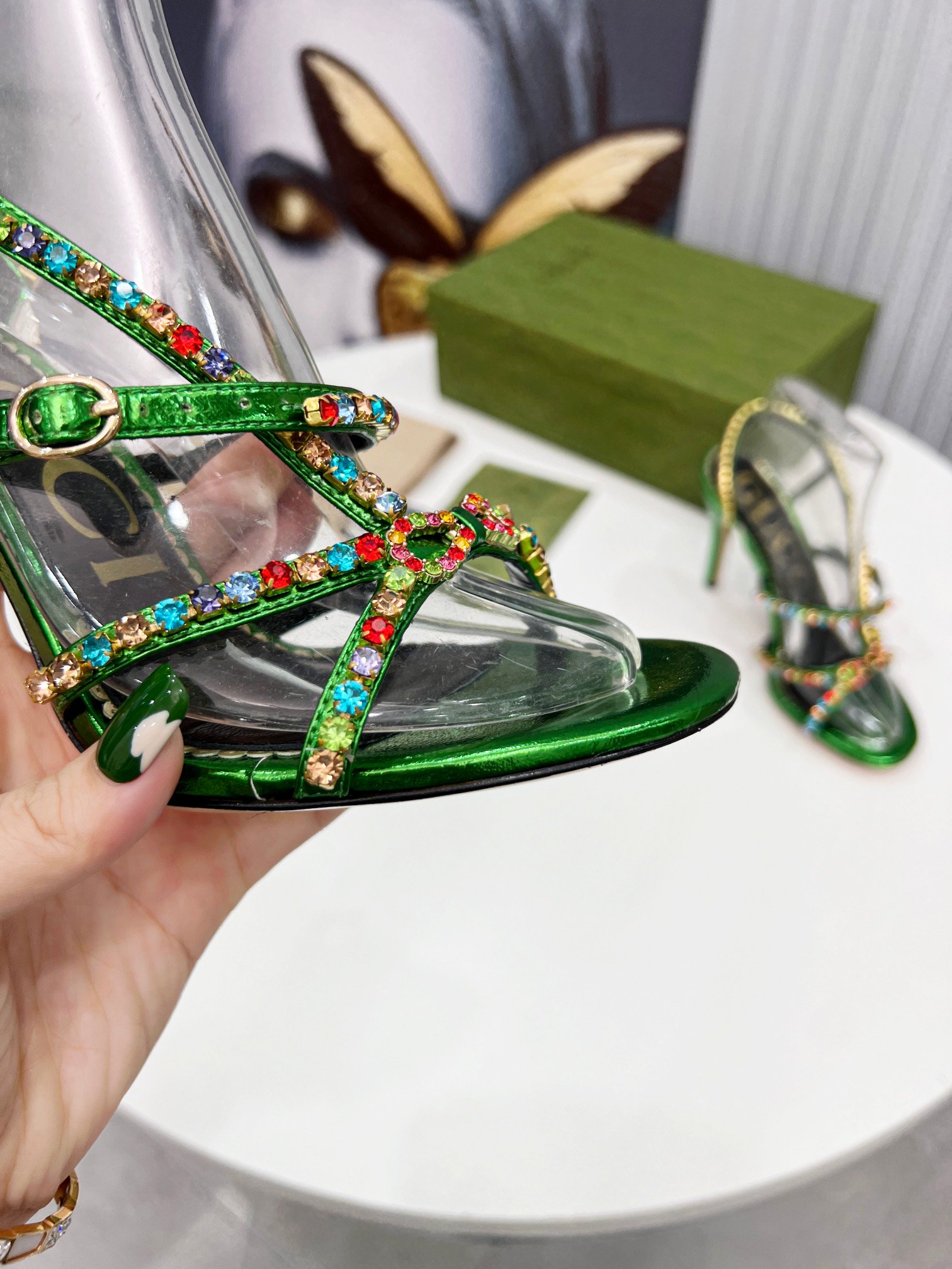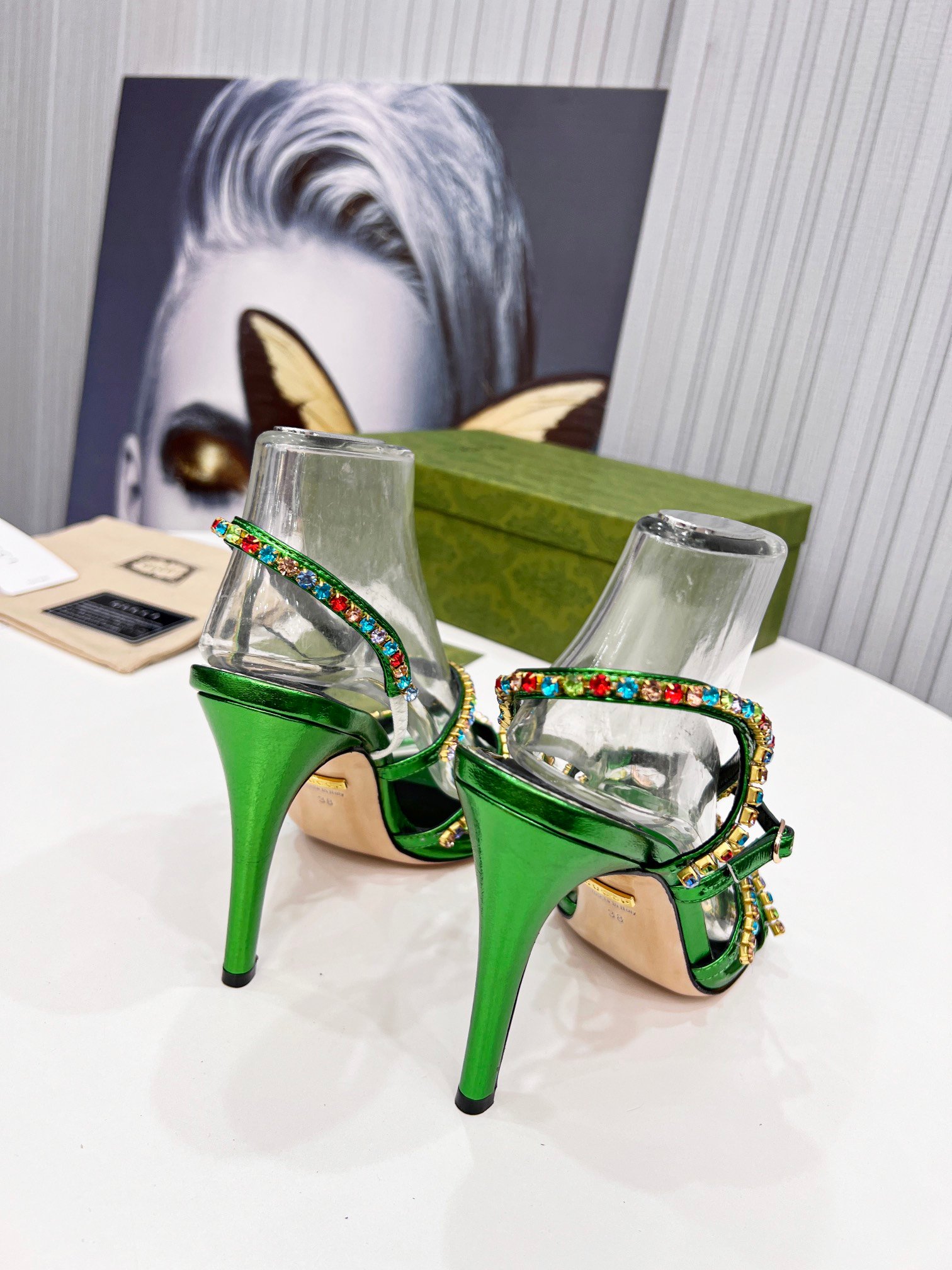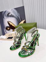 Gucci 女式 GG 黑色/绿色链条凉鞋