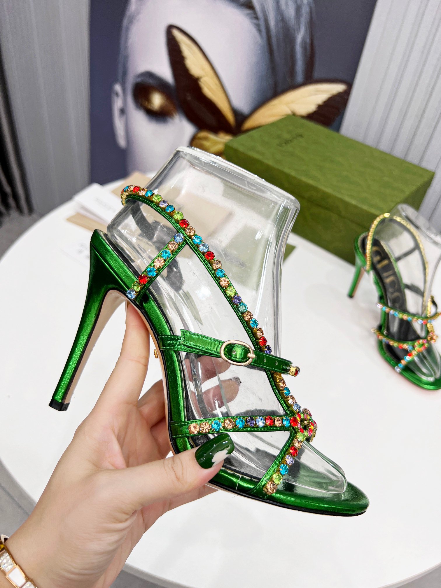 采用黑色/绿色金属制成,金色链条细节为这款凉鞋的经典造型增添了现代感。