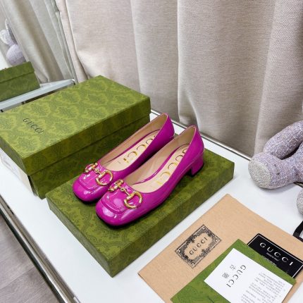 Gucci 女士马衔扣露跟鞋 深粉色 女士 GG