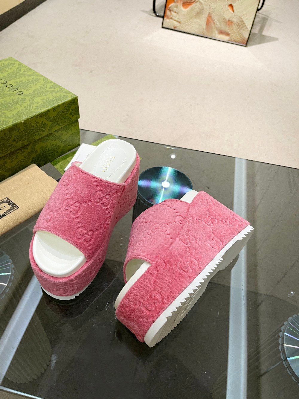 Gucci 女士 GG 厚底凉鞋 粉色 女士 GG