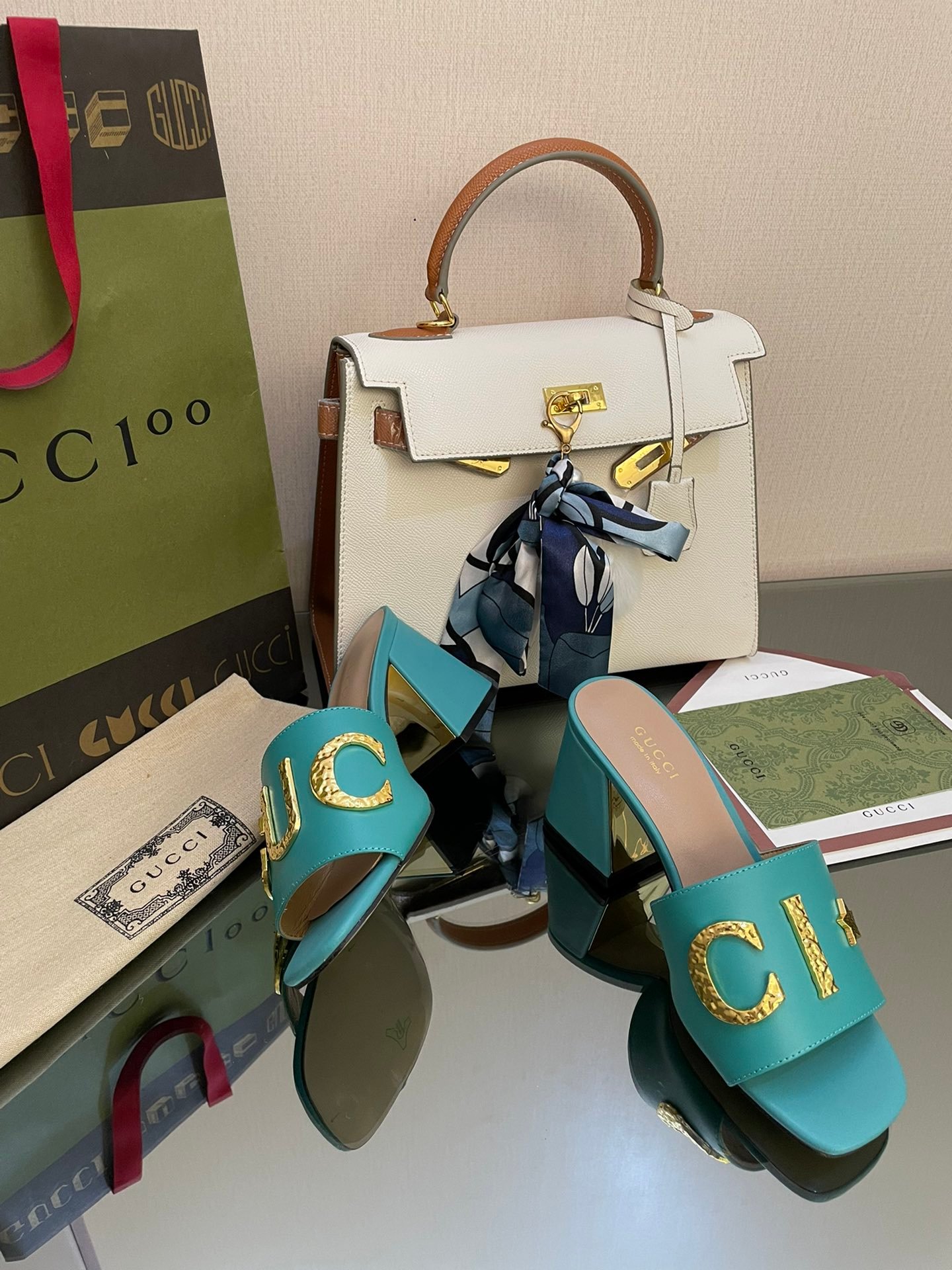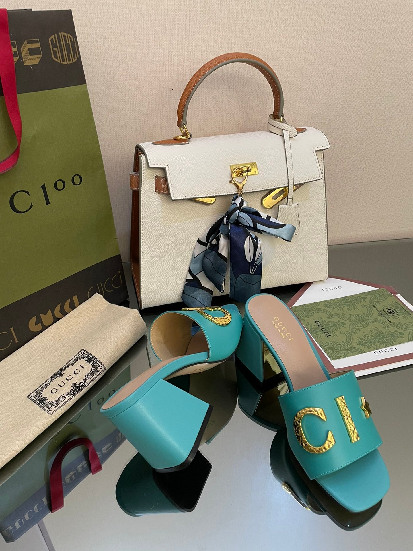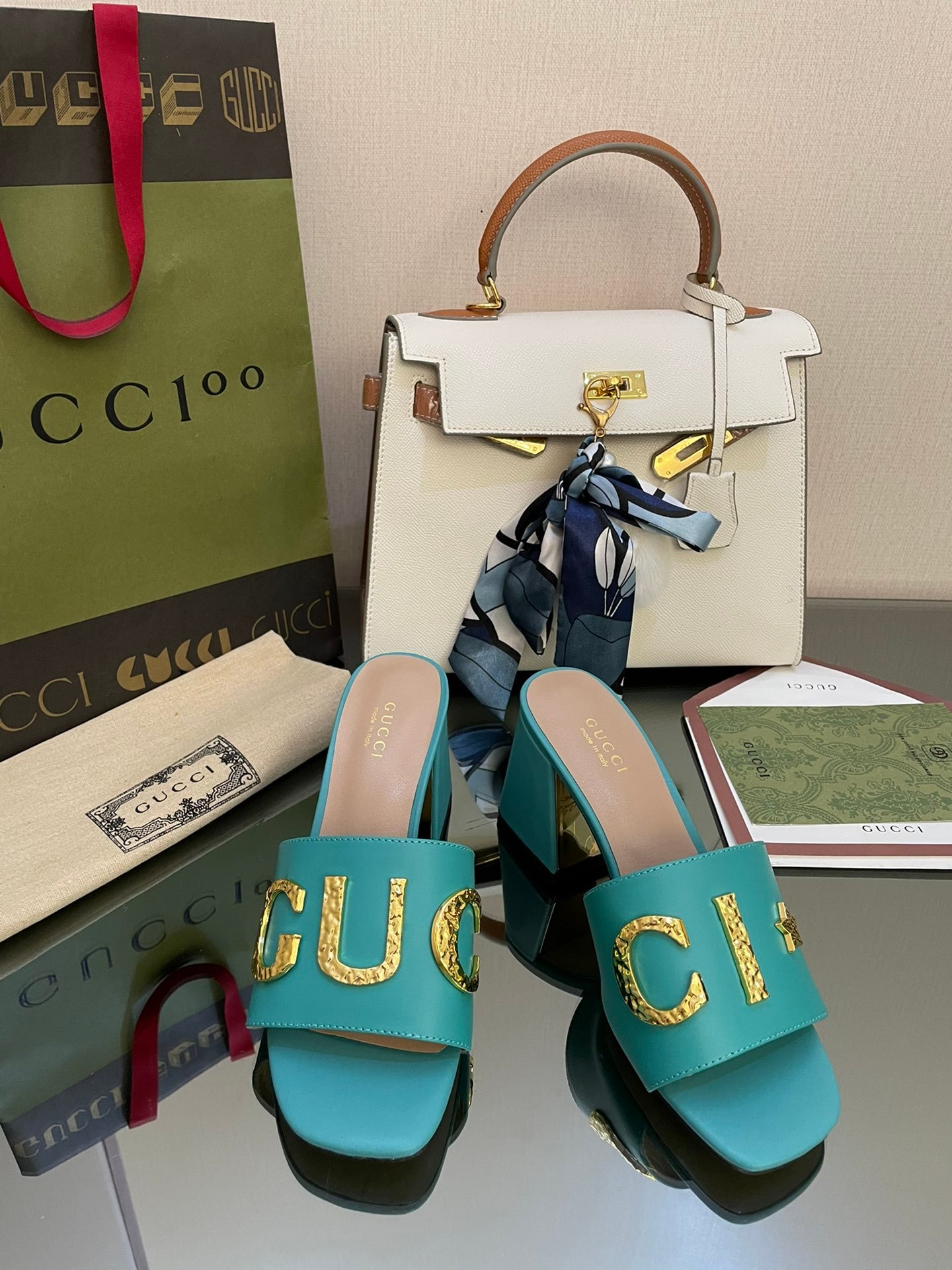 Gucci 女士 GG ‘Gucci’ 拖鞋翡翠绿凉鞋