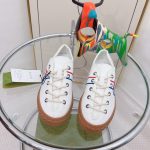 一眼就能辨认的廓形,品牌通过复杂的 Interlocking G 刺绣为这款纤细的运动鞋增添了个性。鞋子采用米色棉质面料,蓝色和红色徽标细节引人注目。