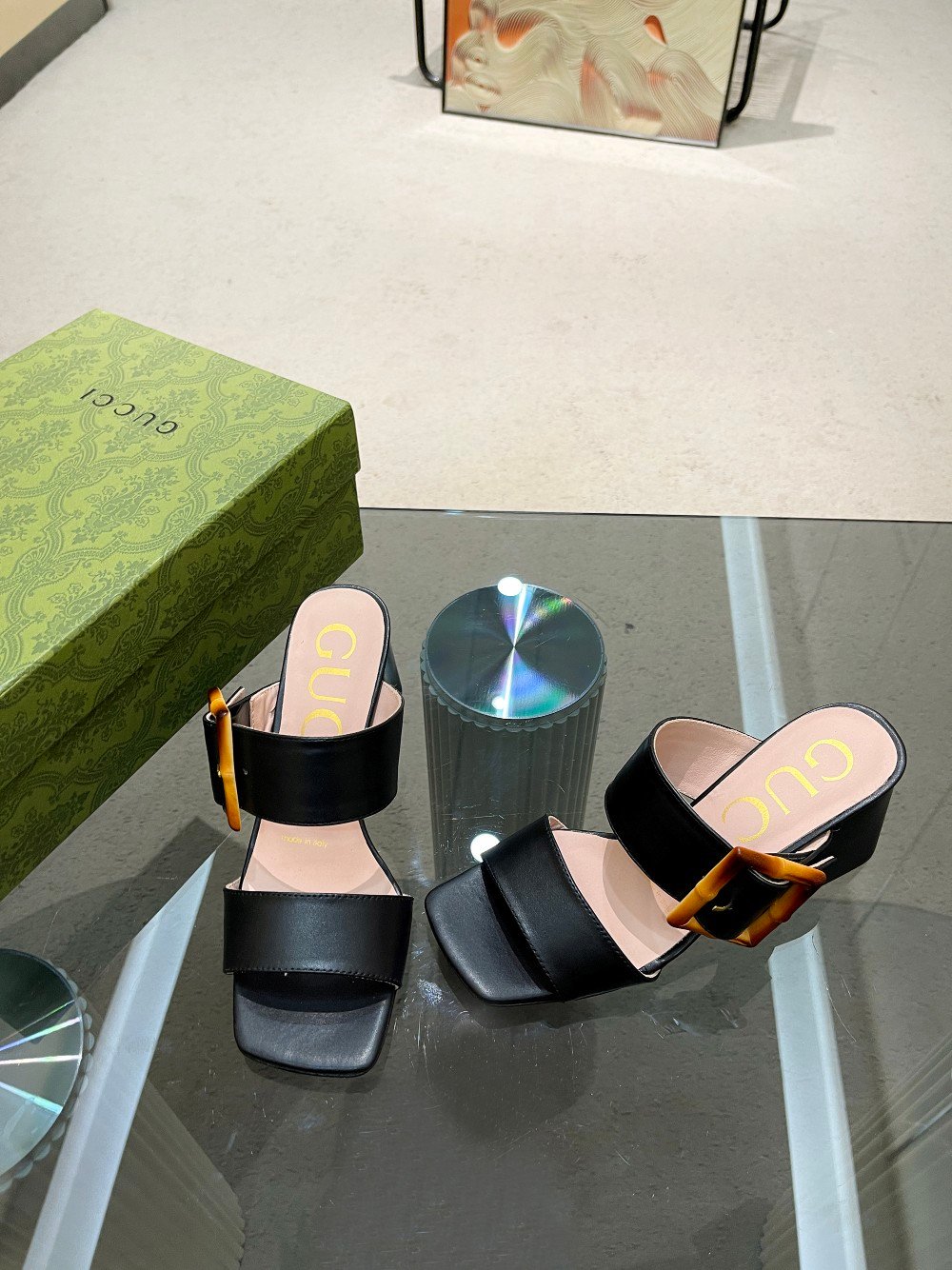 Gucci 女式 GG 竹扣女式凉鞋黑色 GG