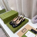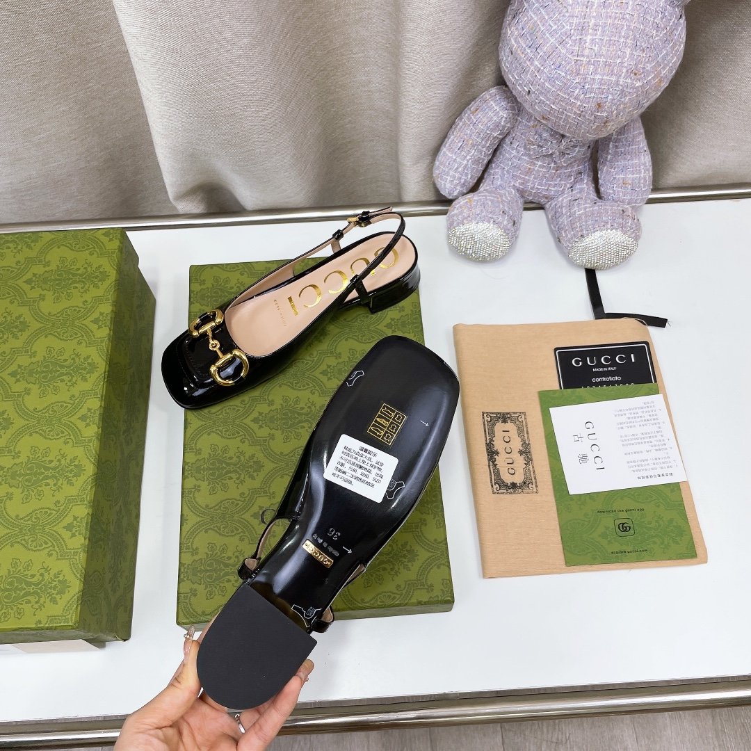 Gucci 女式马衔扣露跟鞋 黑色 GG
