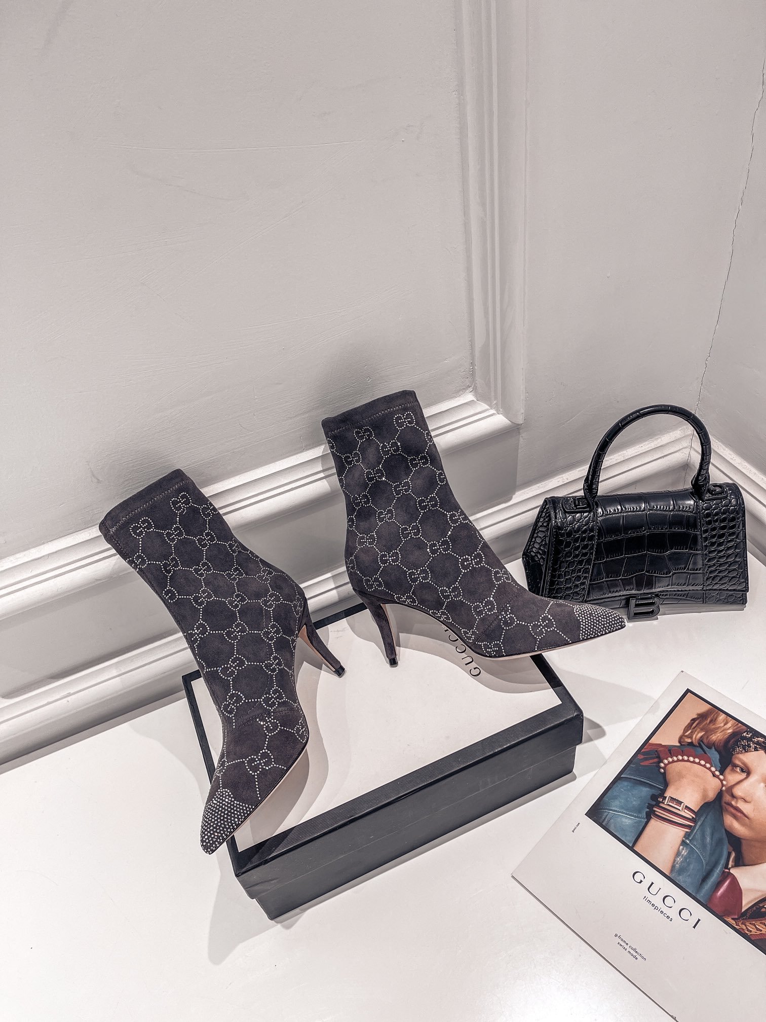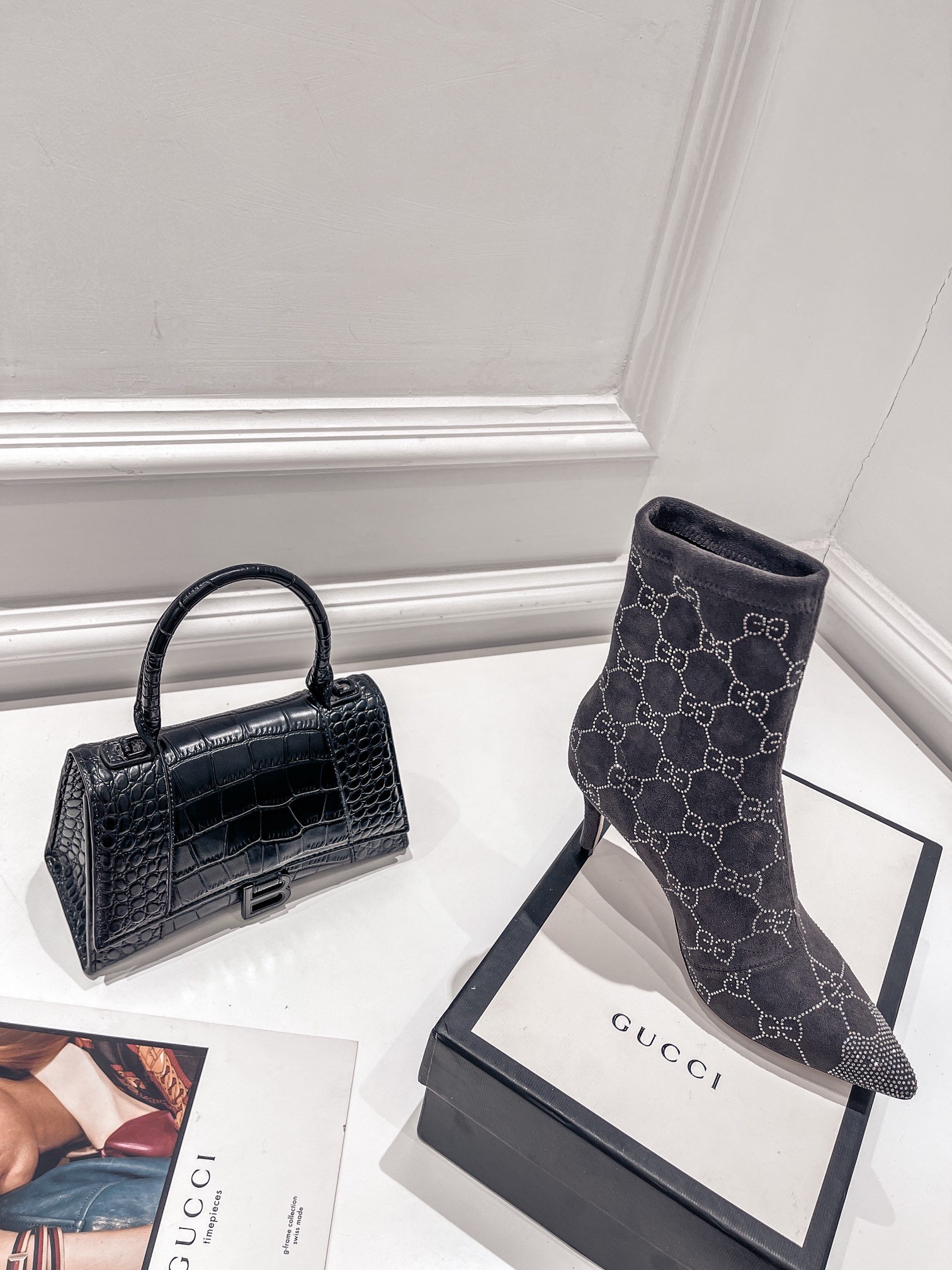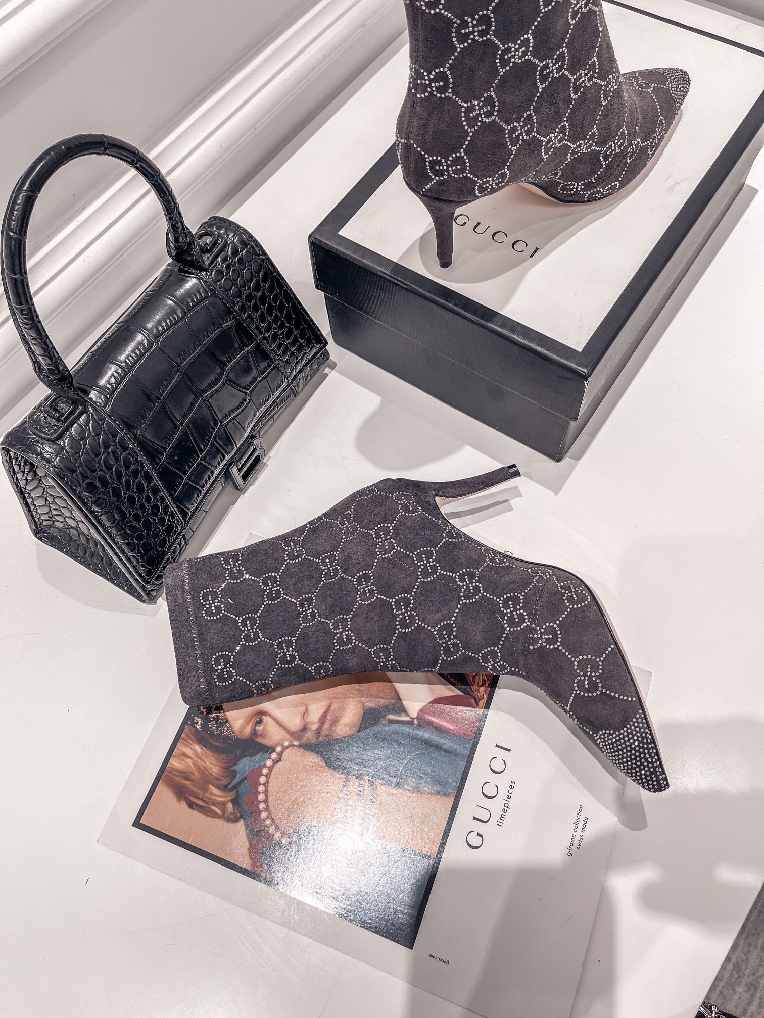 意想不到的材质、形状和细节贯穿始终。这双踝靴混合复古