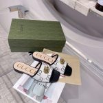 Gucci 女式 GG 拉菲草效果拖鞋 黑色 女式 GG