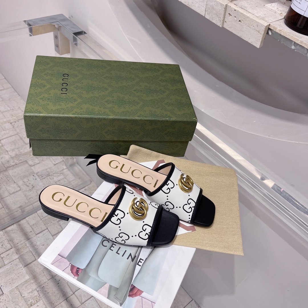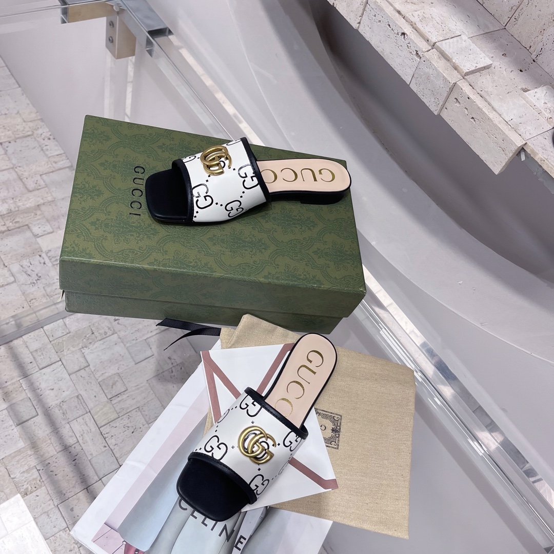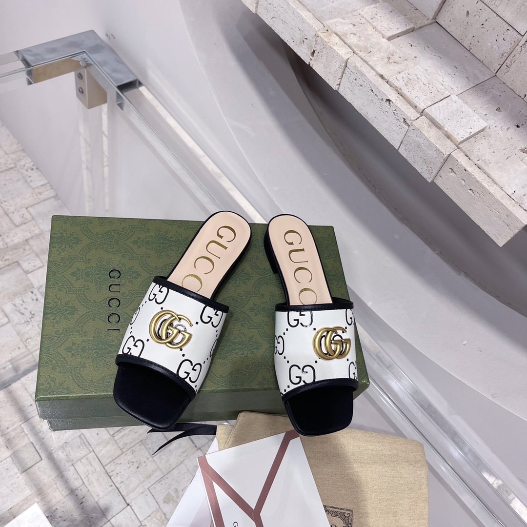 在每个系列中脱颖而出,新版 Double G 凉鞋在 Gucci Love Parade 中亮相。百搭廓形采用白色和黑色拉菲草效果面料,通体饰有字母图案。延续标志感,双 G 完善了配件。