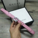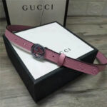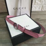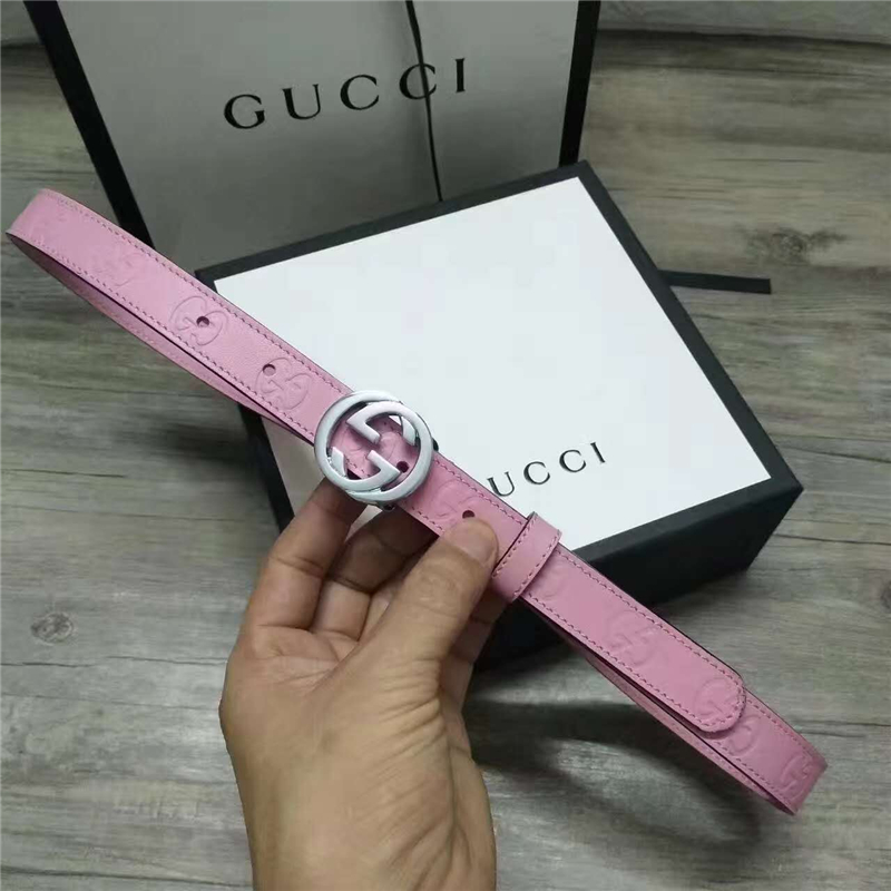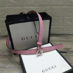 - Gucci 新款 进口原版小牛皮压花 女士腰带 双G扣头 双面可用 粉色银扣