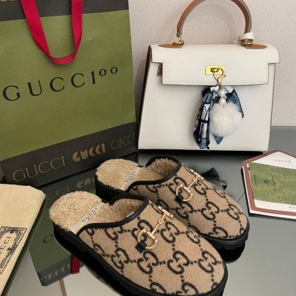 Gucci 男士 GG 拖鞋带马衔扣棕色男士 GG 鞋 694249