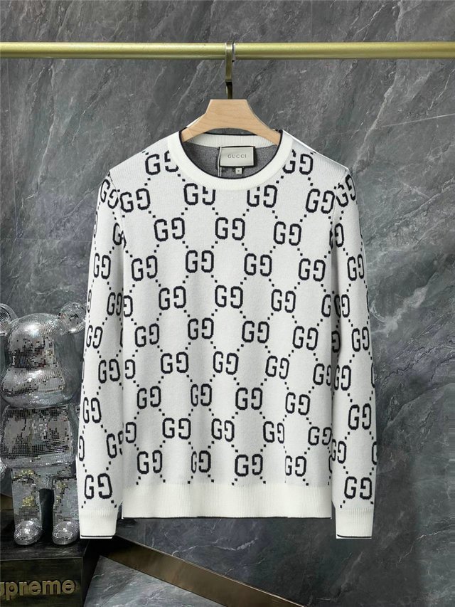 Gucci 男士羊毛提花毛衣 GG 白色