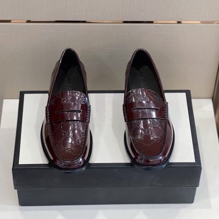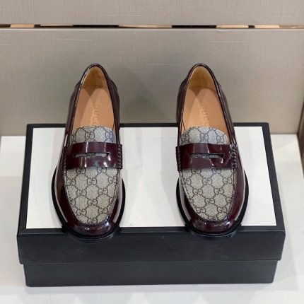 Gucci 男士 GG 压花乐福鞋马衔扣深棕色男士 699501