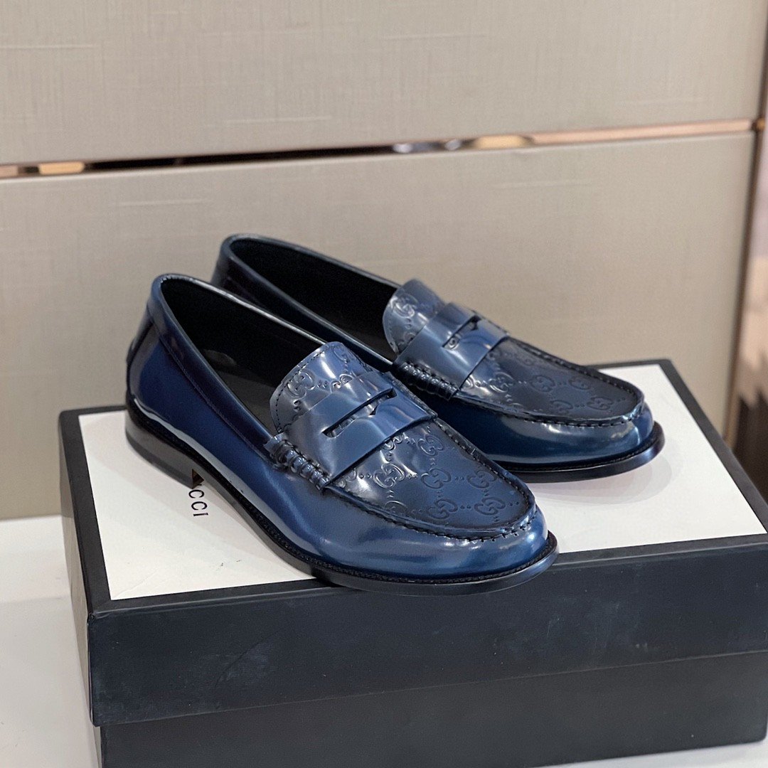 Gucci 男士 GG 压纹乐福鞋 马衔扣蓝色 男士 699501