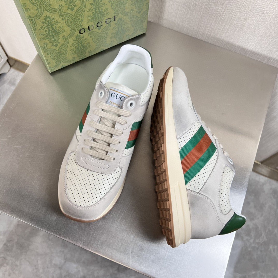 Gucci 绿色织带运动鞋 男士 GG 鞋 669698