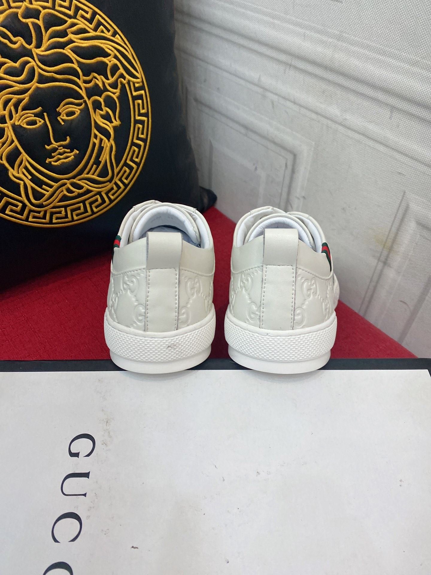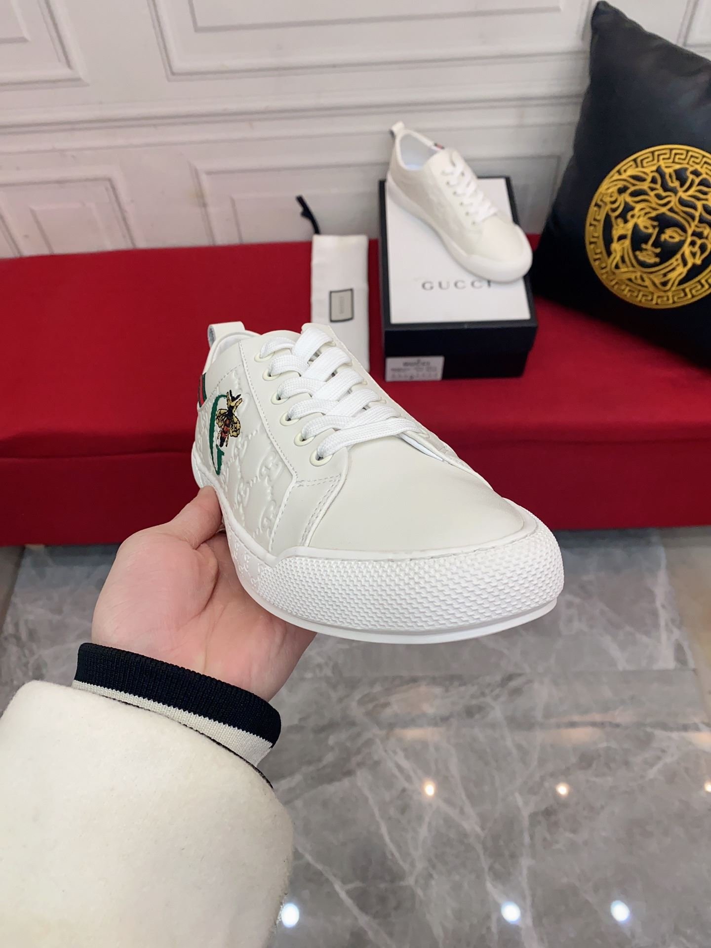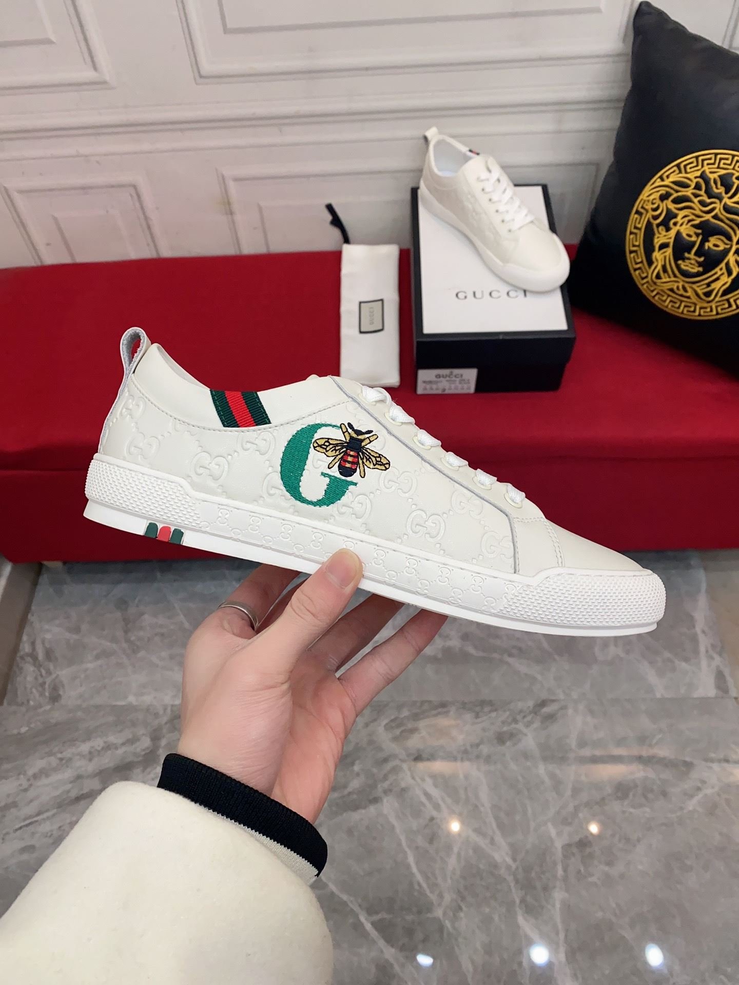 Gucci 男式 Ace GG 压花男式运动鞋,带 G 和蜜蜂白色 625787