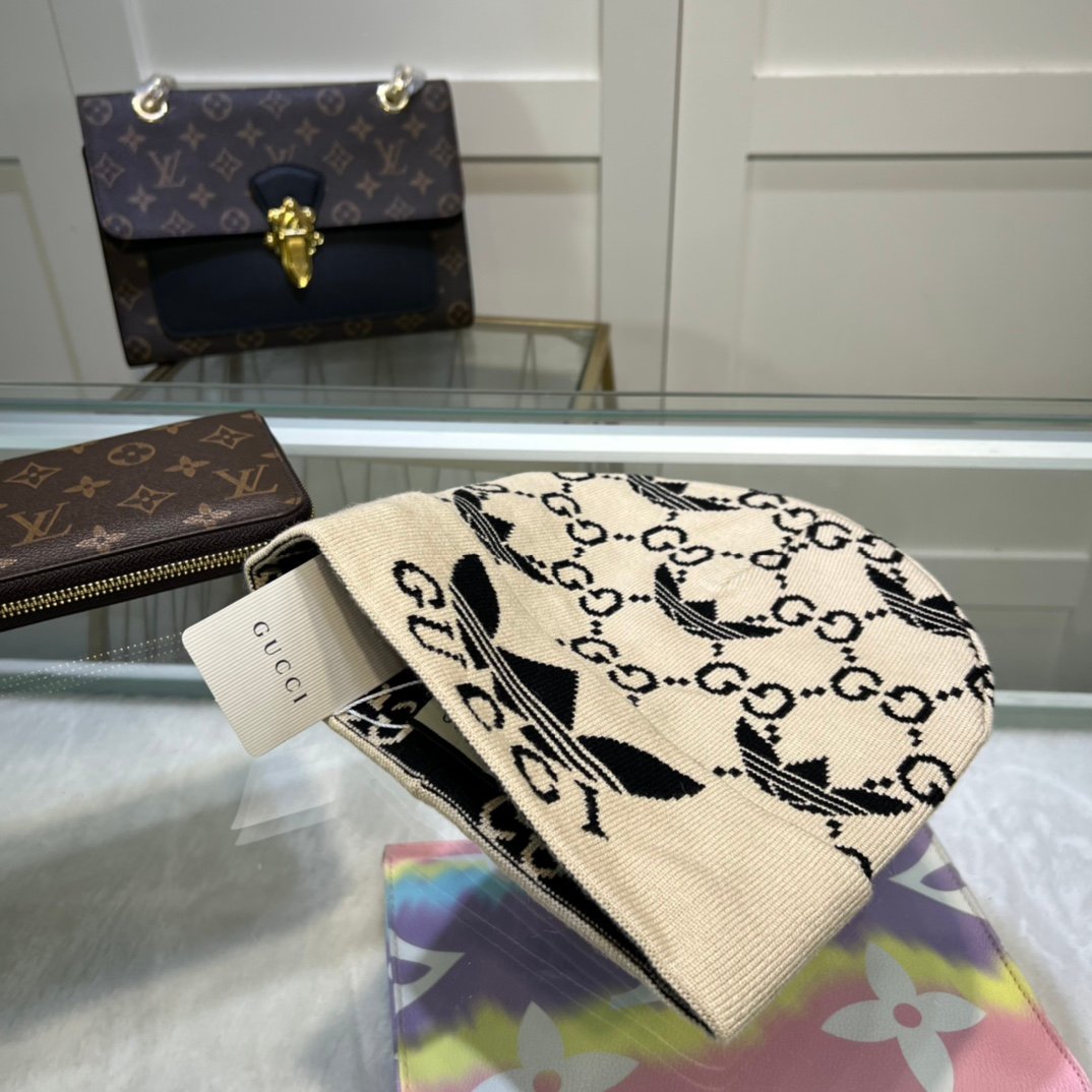 Gucci 米色羊绒毛线帽