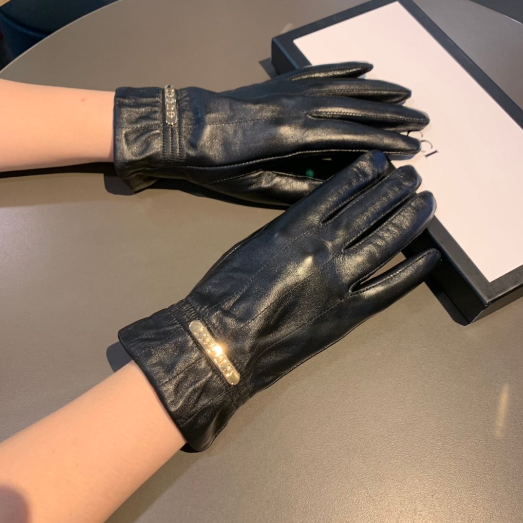 Gucci 黑色标志性双 G 图案手套