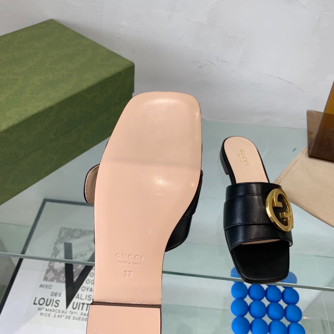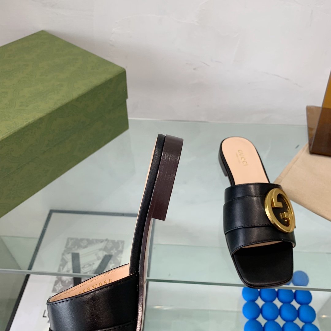 Gucci Blondie 女式 GG 黑色拖鞋