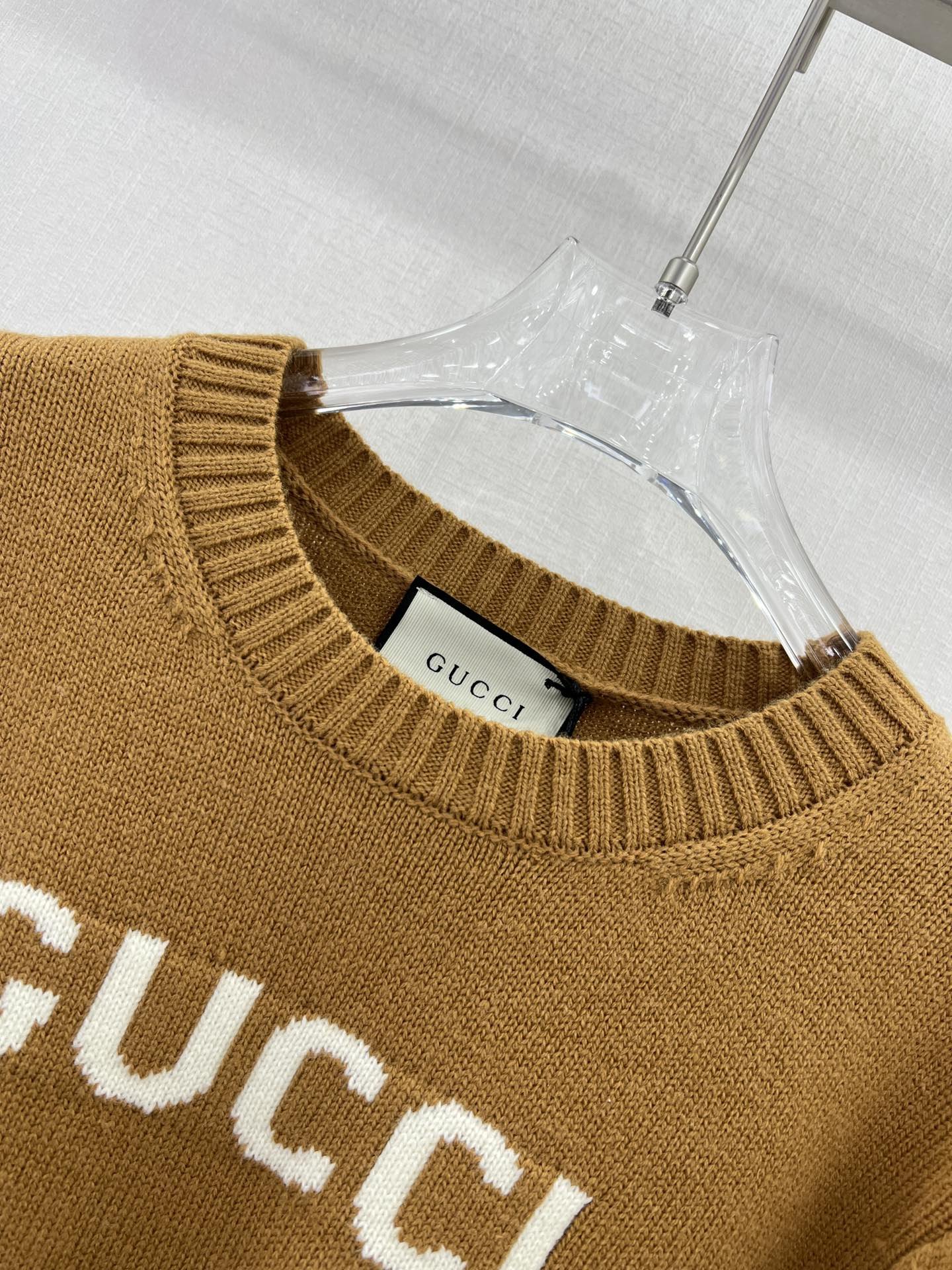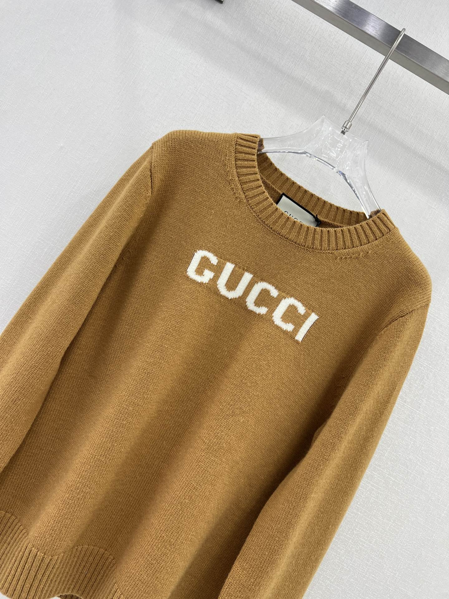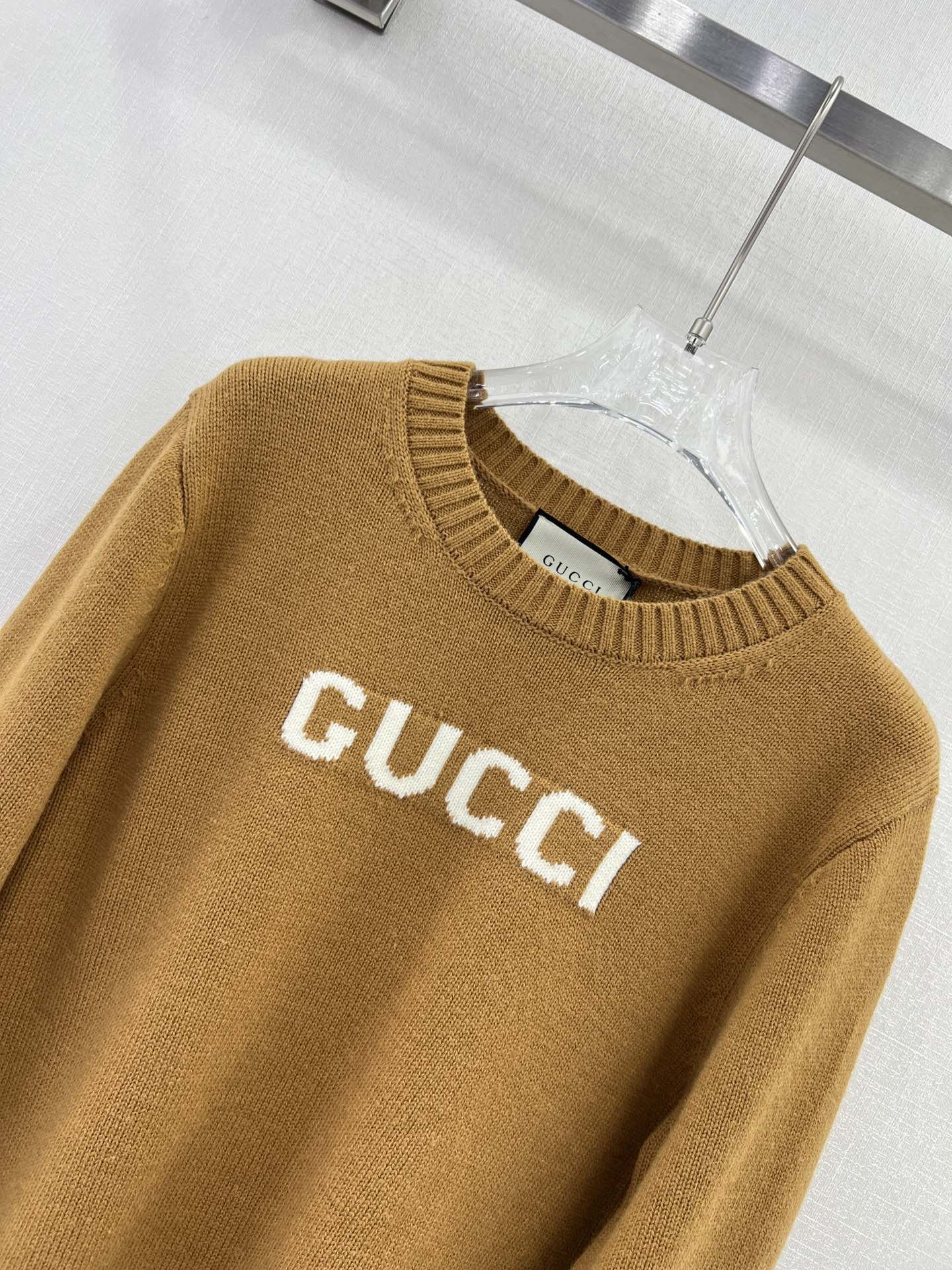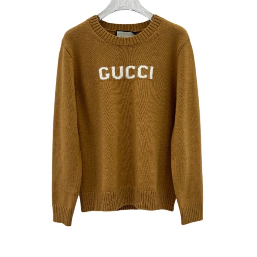 Gucci 女士拉绒羊毛圆领毛衣 棕色