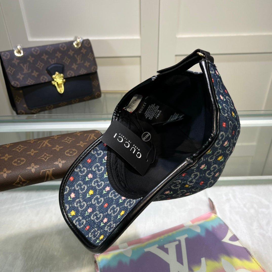 Gucci GG 棒球帽搭配黑色花卉 GG 帽子