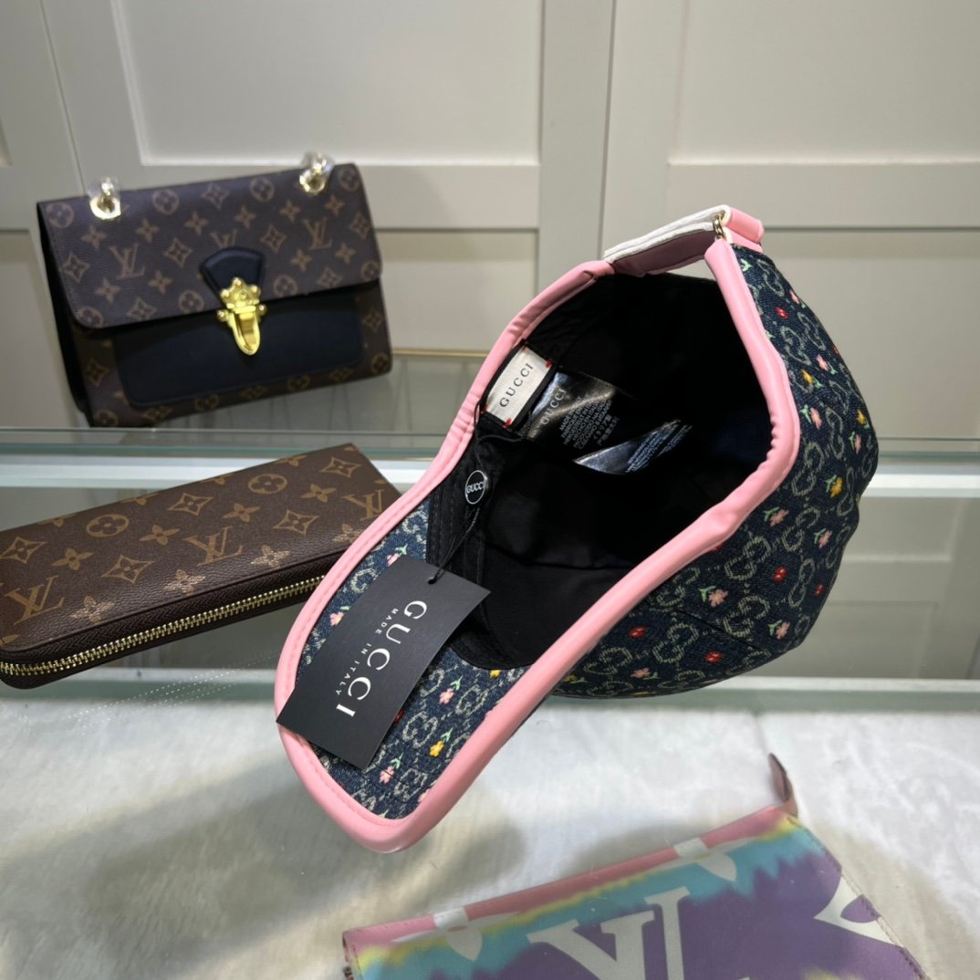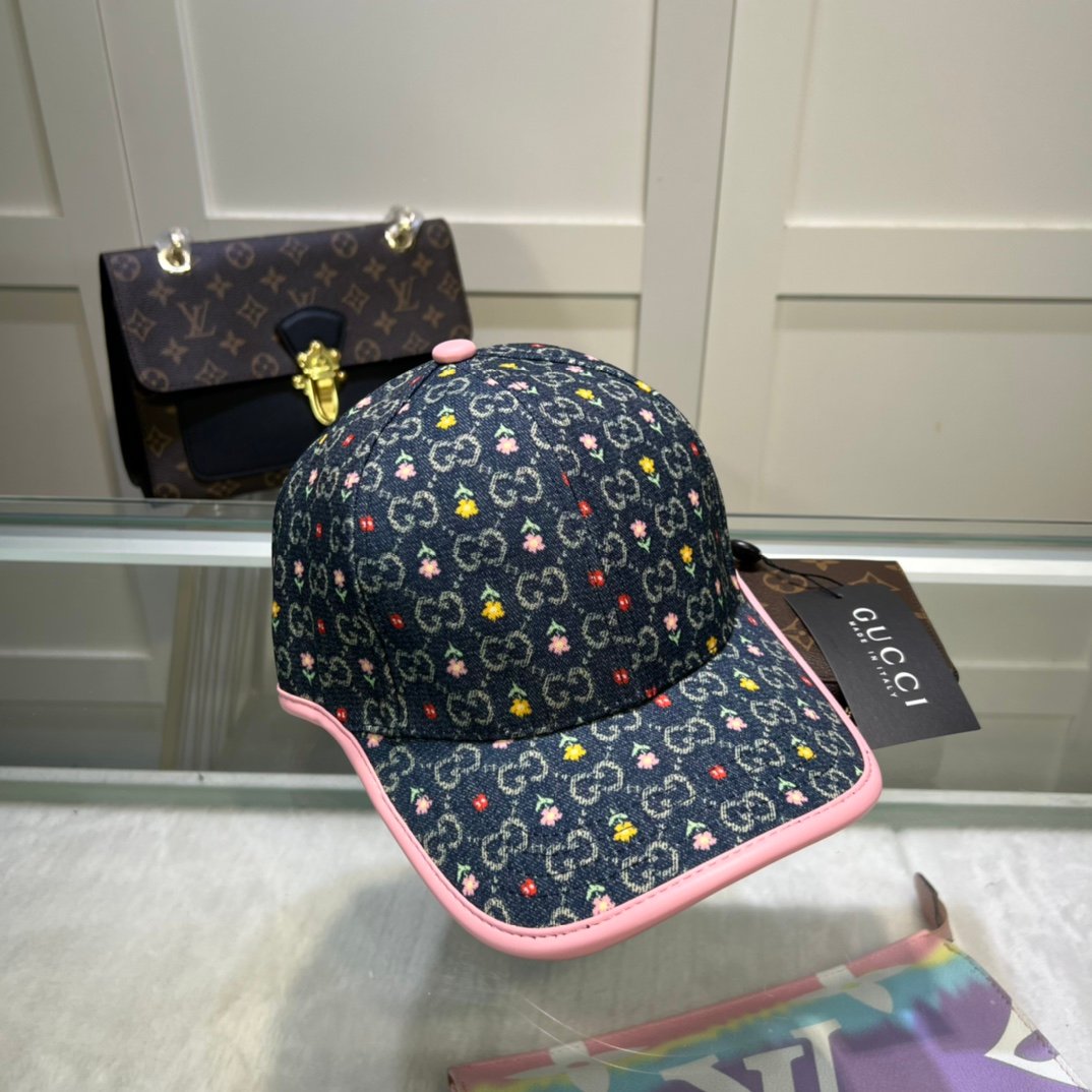 Gucci GG 棒球帽搭配黑色花卉 GG 帽子