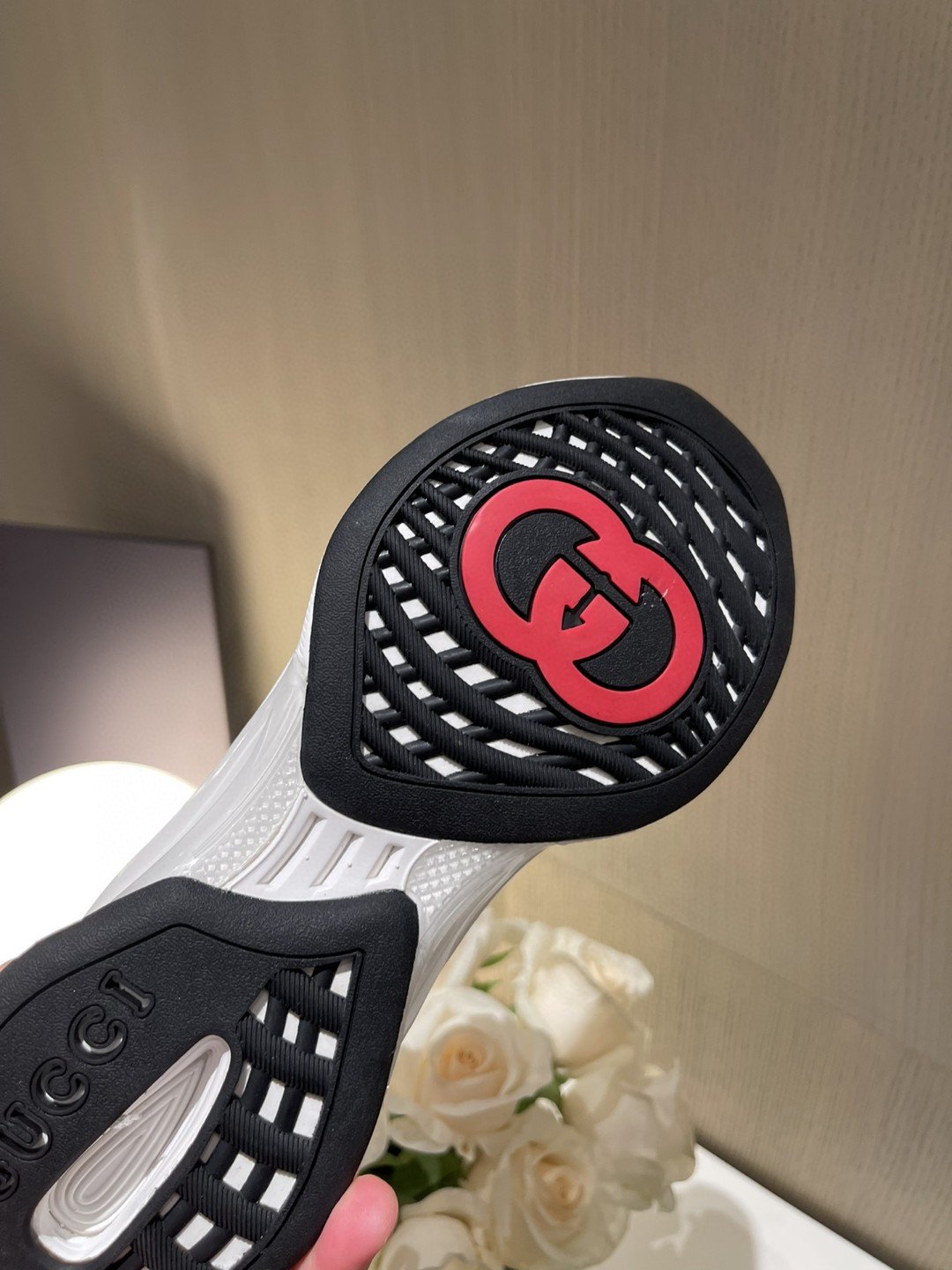 后外底有 Gucci 徽标