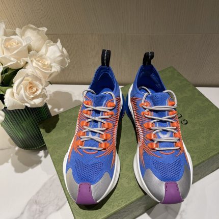 受体育界启发的设计通过 Gucci 镜片与引人注目的标志细节进行诠释。这双流线型运动鞋采用白色科技针织面料制成,并以 Interlocking G 为特色。双色鞋底以俏皮的色彩对比完善了款式。