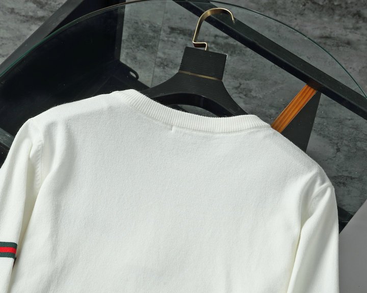 Gucci 男士羊毛提花蜜蜂徽标毛衣 白色