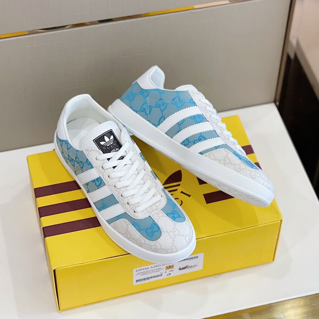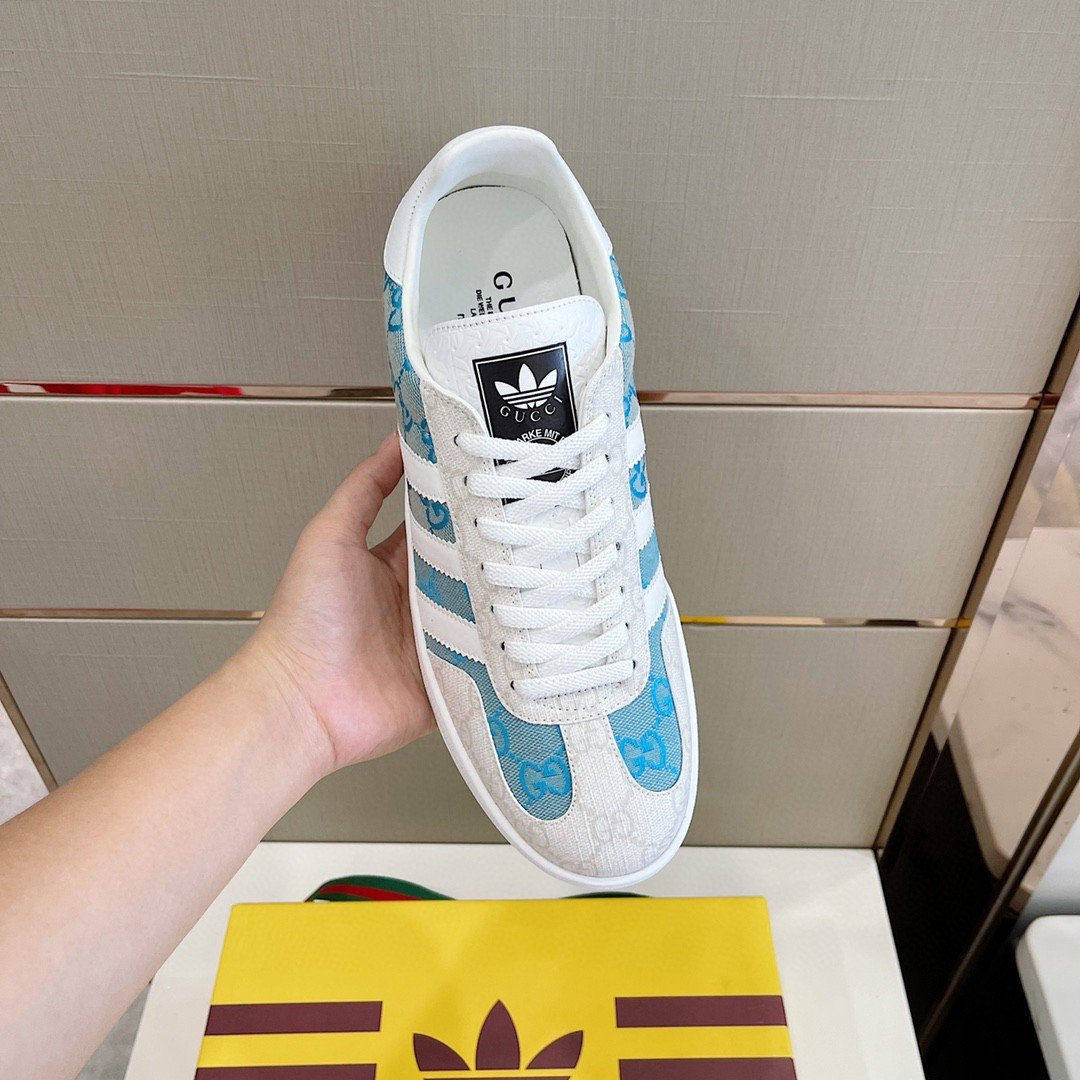 Gucci x Adidas 男士 GG Gazelle 运动鞋浅蓝色和白色 707848