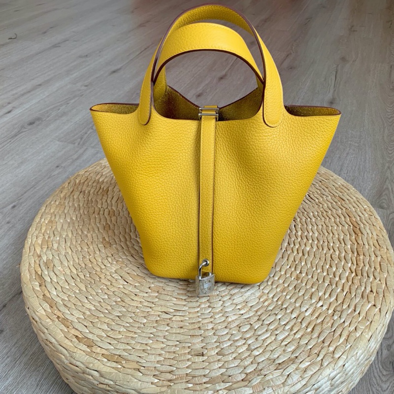 - Hermes爱马仕菜篮子 Hermes picotin18 爱马仕水桶包 TC皮 琥珀黄