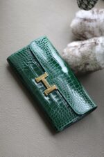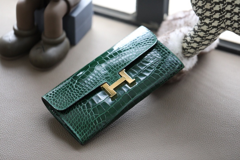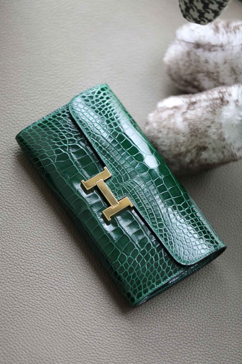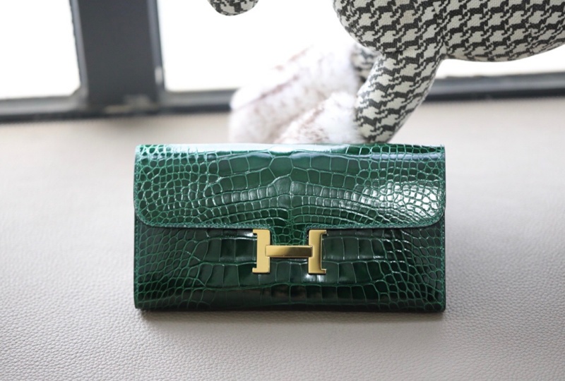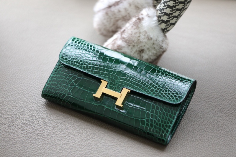 - Hermes钱包 爱马仕Constance大康钱包 纯手工顶级美洲鳄鱼皮 祖母绿