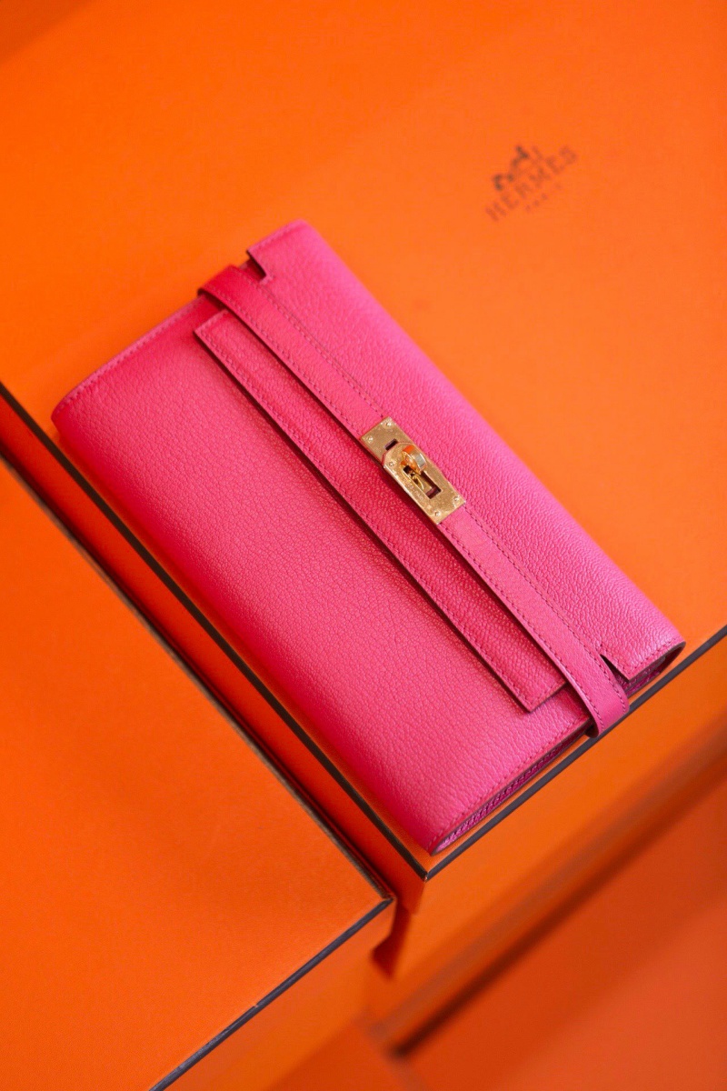 • Hermes钱包 爱马仕Kelly钱包 纯手工顶级Epsom皮 糖果粉