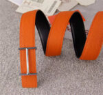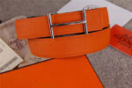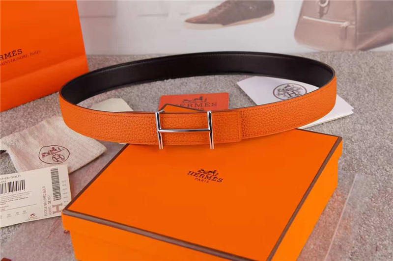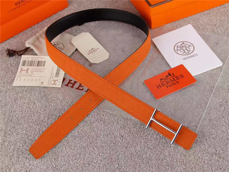 - HERMES 2017经典款 进口牛皮 原版 不锈钢扣头 银扣橙色带身