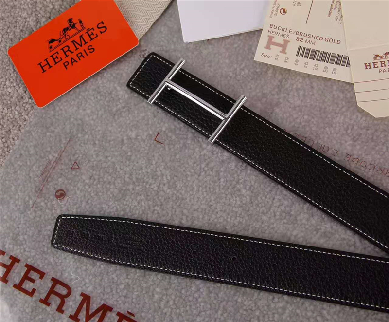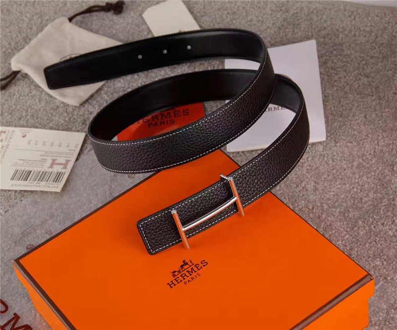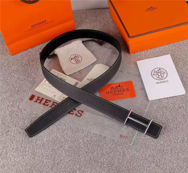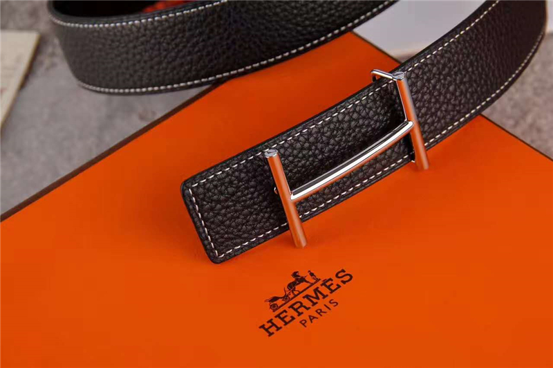 - HERMES 2017经典款 进口牛皮 原版 不锈钢扣头 银扣黑色带身