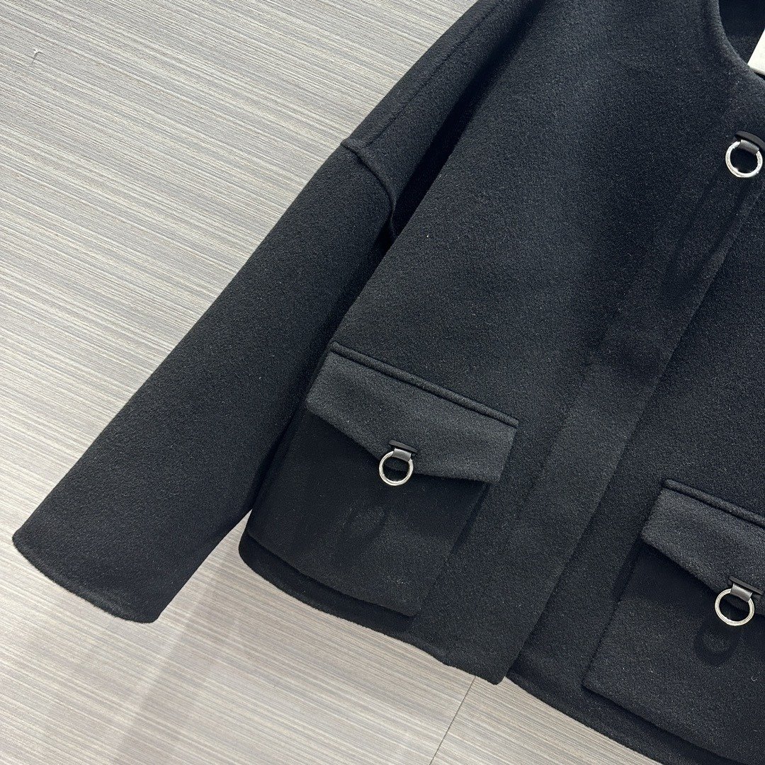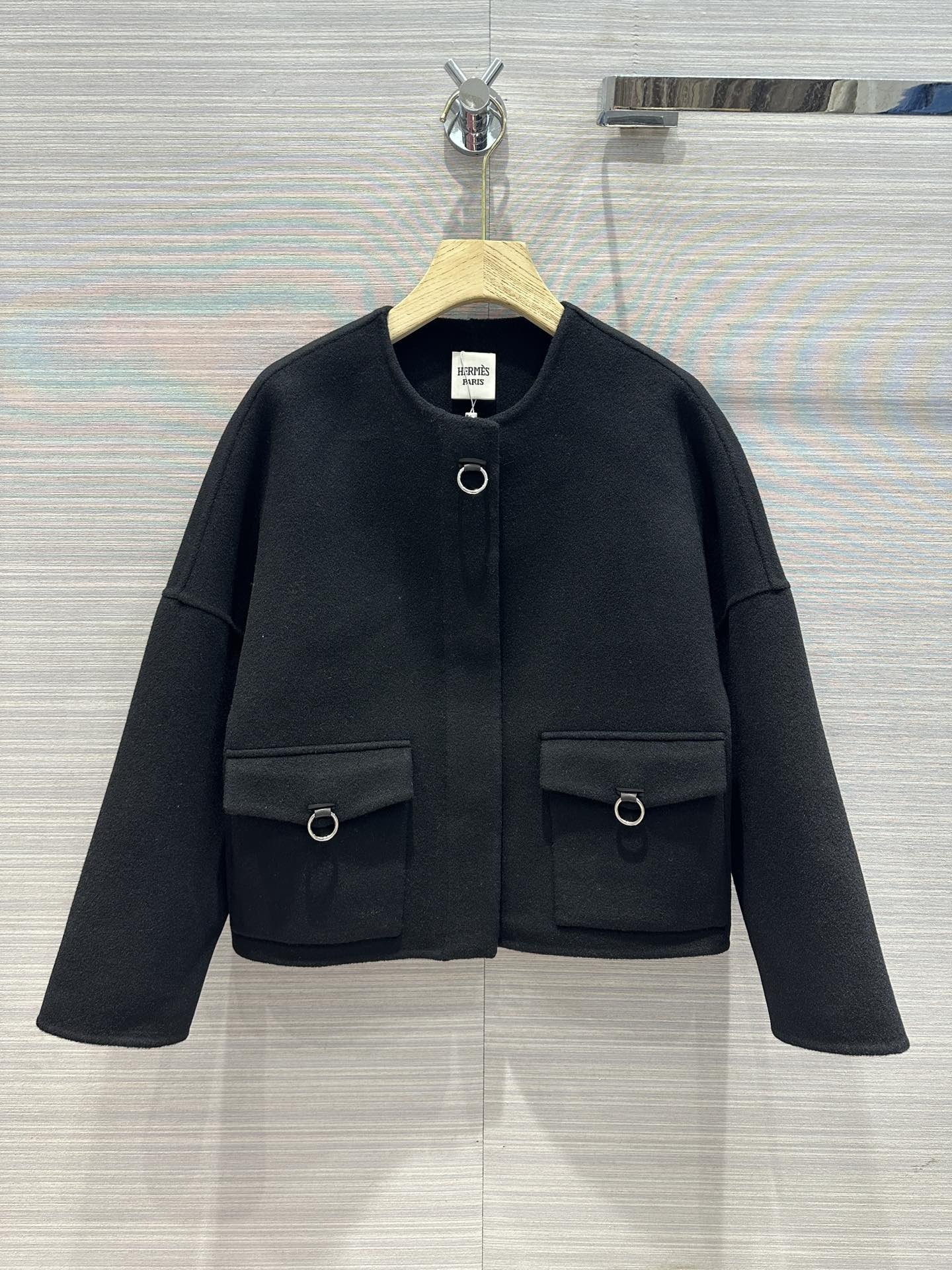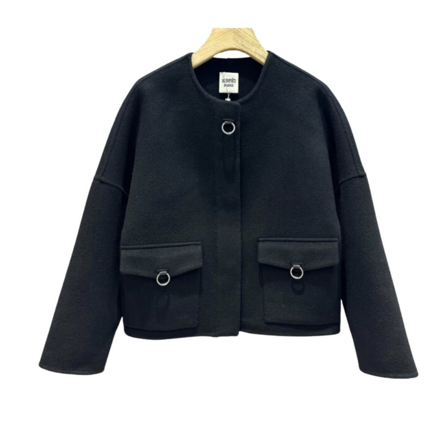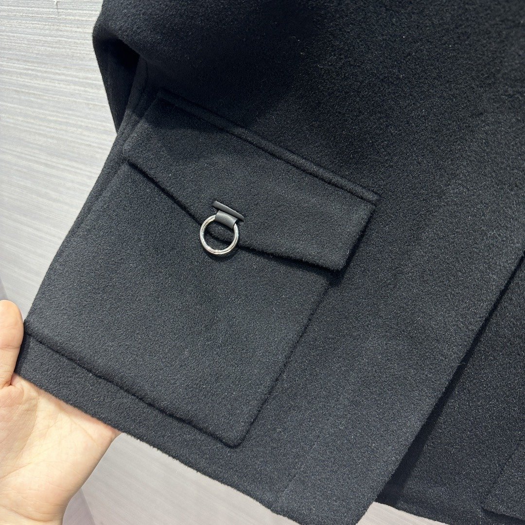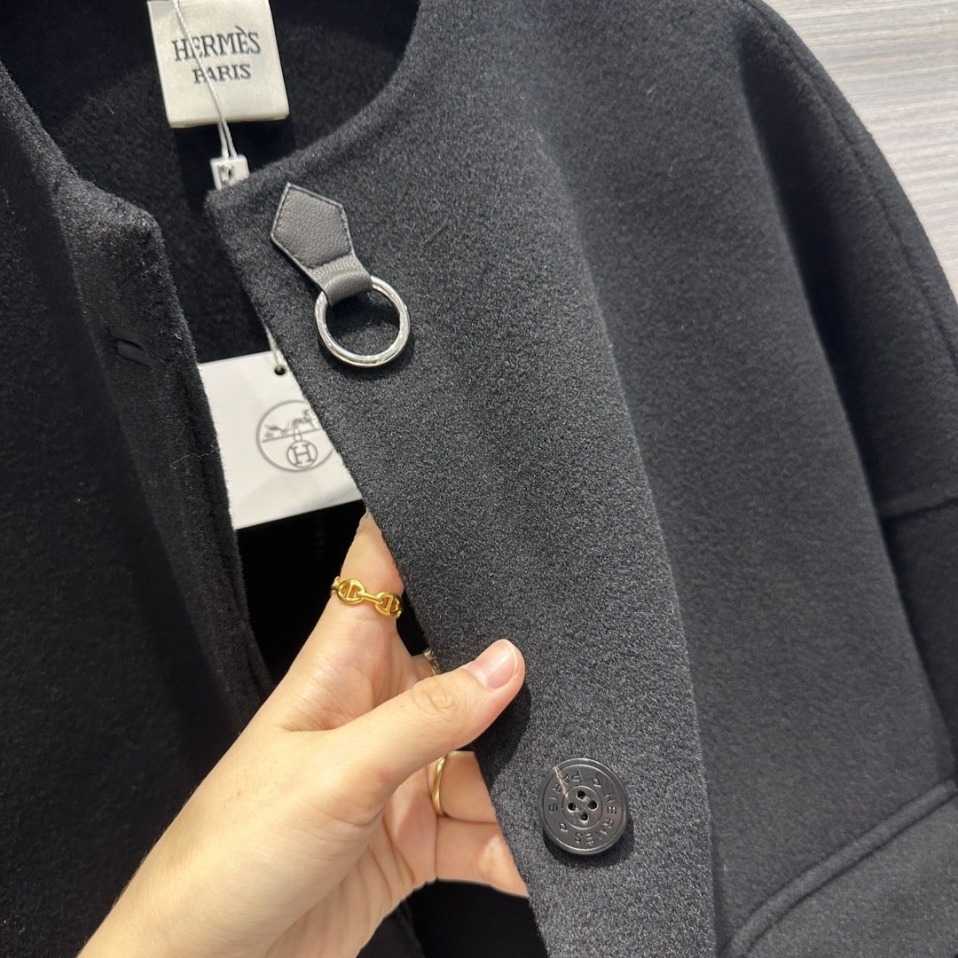 爱马仕羊绒街头风格纯色长款黑色女款