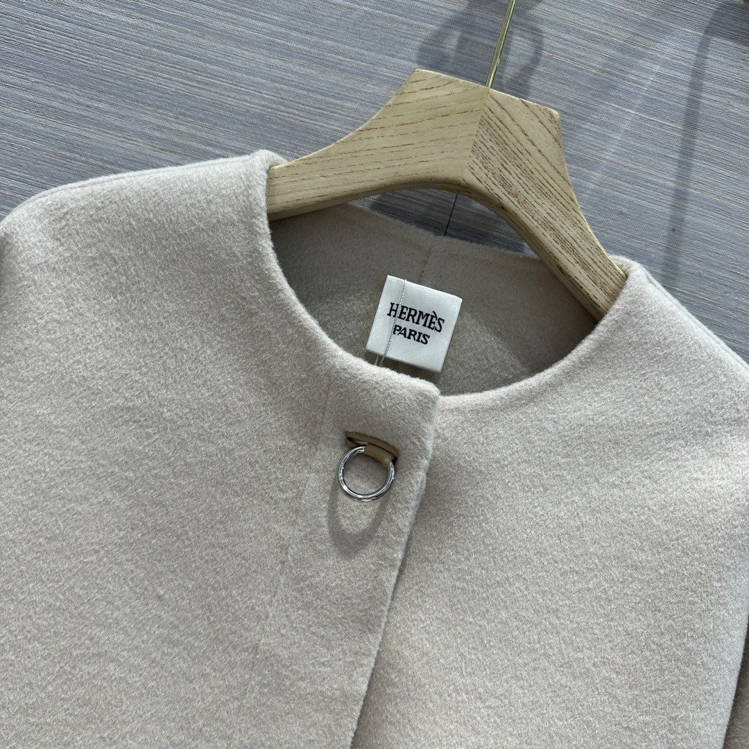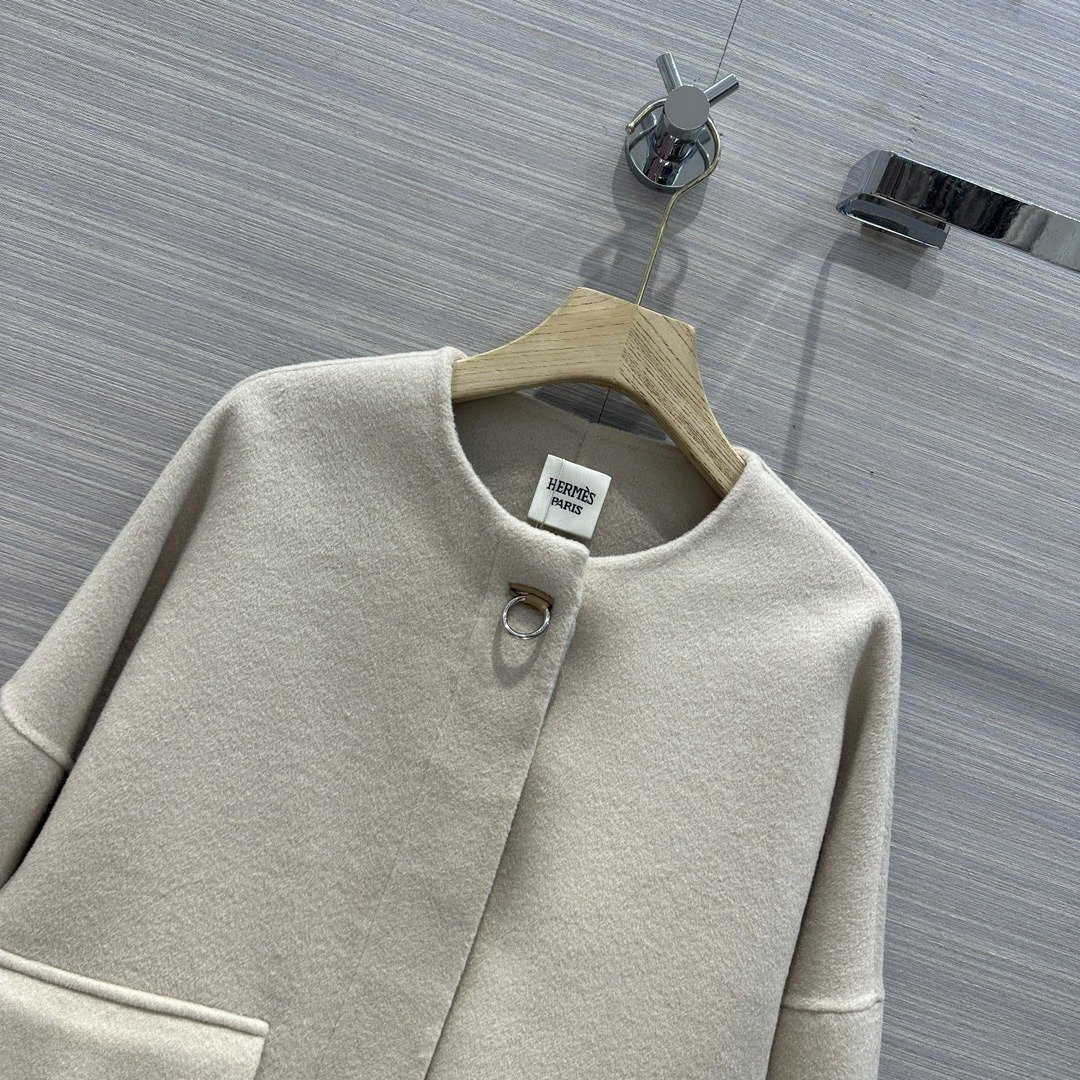 爱马仕羊绒街头风格纯色长款奶油色女士