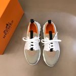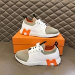 针织运动鞋,橡胶鞋底和标志性橙色边缘。浅色鞋底,打造现代运动外观。