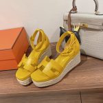 Hermes Doll 40 女式草编鞋黄色 1.6 英寸/4 厘米