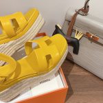 Hermes Doll 40 女式麻底鞋黄色 1.6 英寸/4 厘米