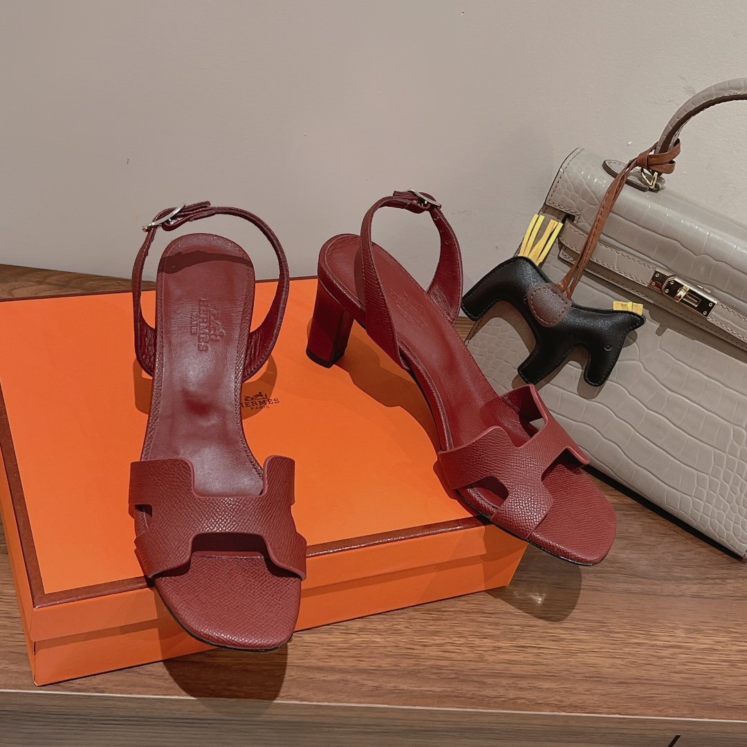 Hermes Eternite 女式凉鞋深红色 2.7 英寸/7 厘米