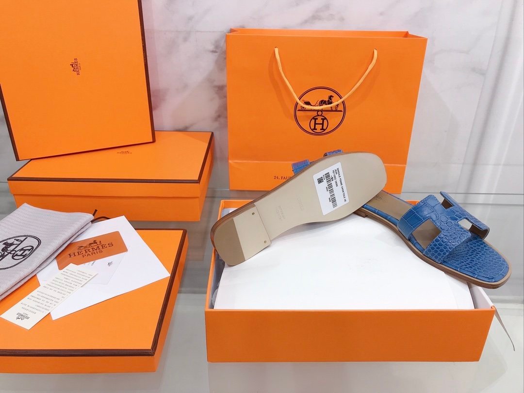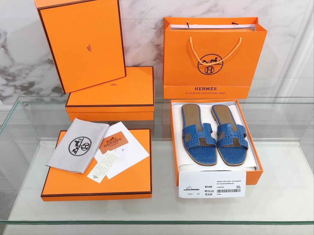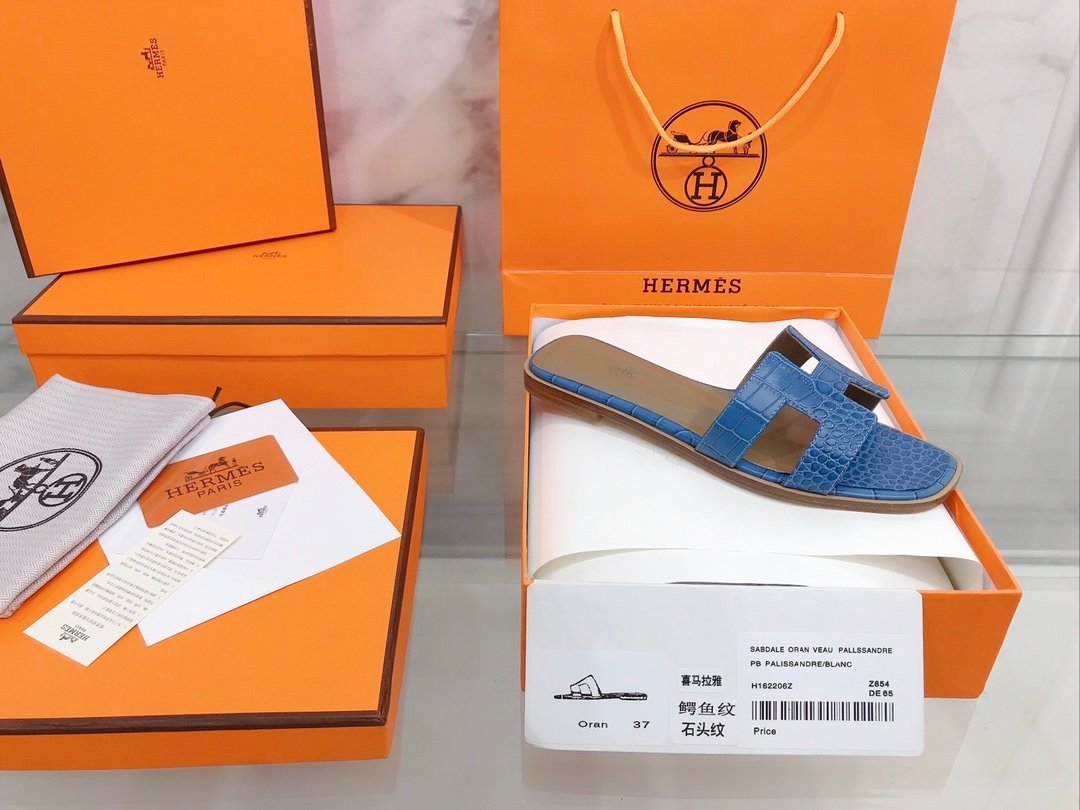 Hermes Oran 女式凉鞋蓝色,女鞋