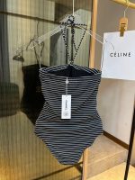 Chanel Horizontal Striped One Piece Swimsuit Black