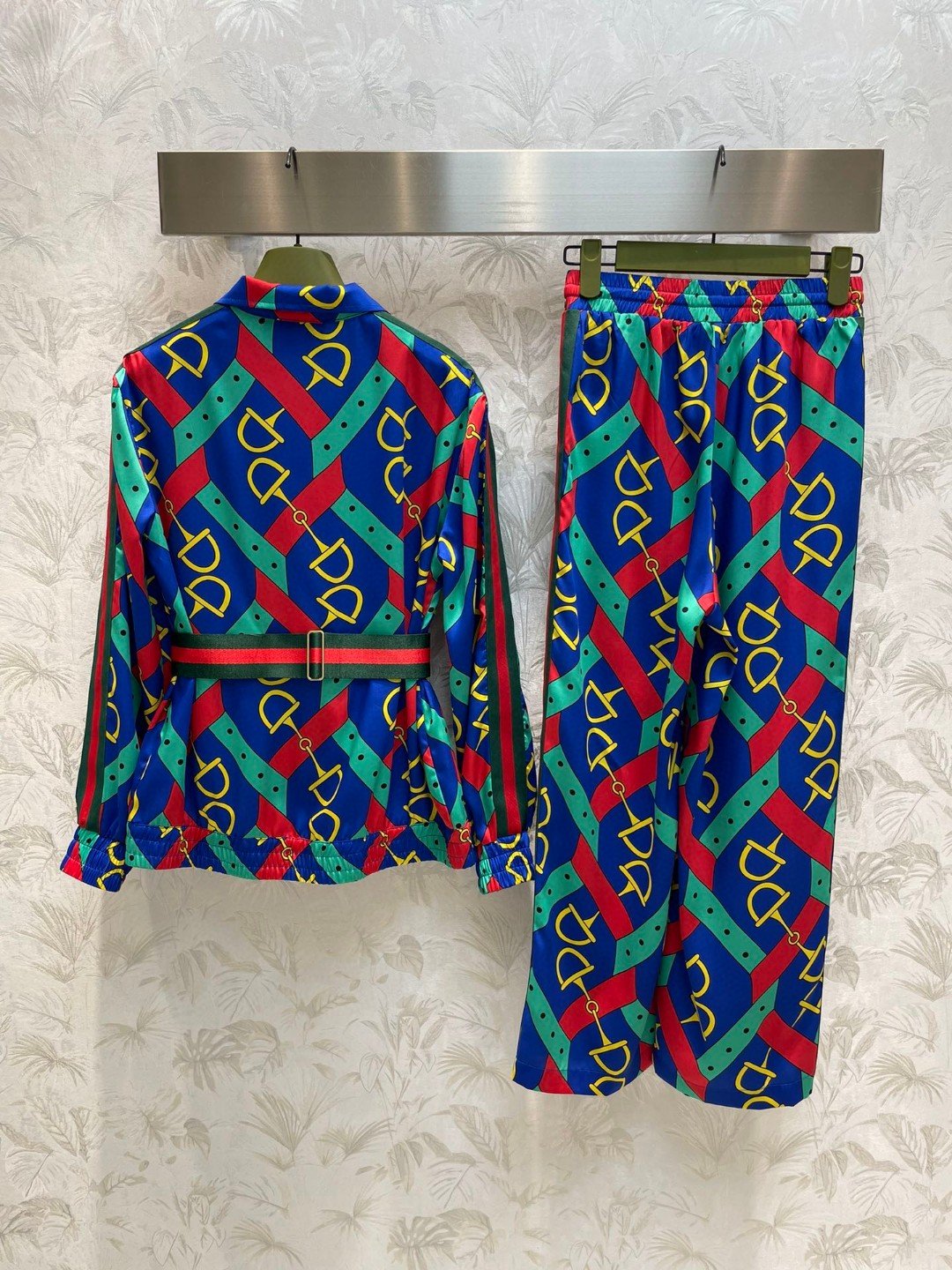 Gucci Horsebit Strap Print Jacket And Pants Multicolor