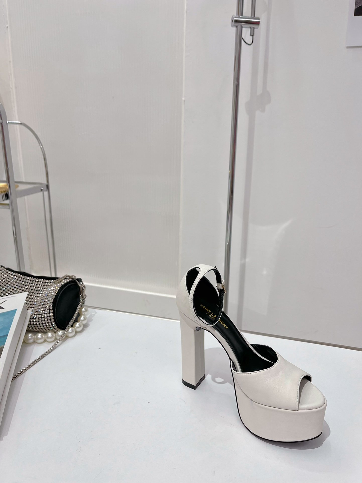 Saint Laurent Jodie 光滑白色厚底凉鞋 – 650258AAAOE1906