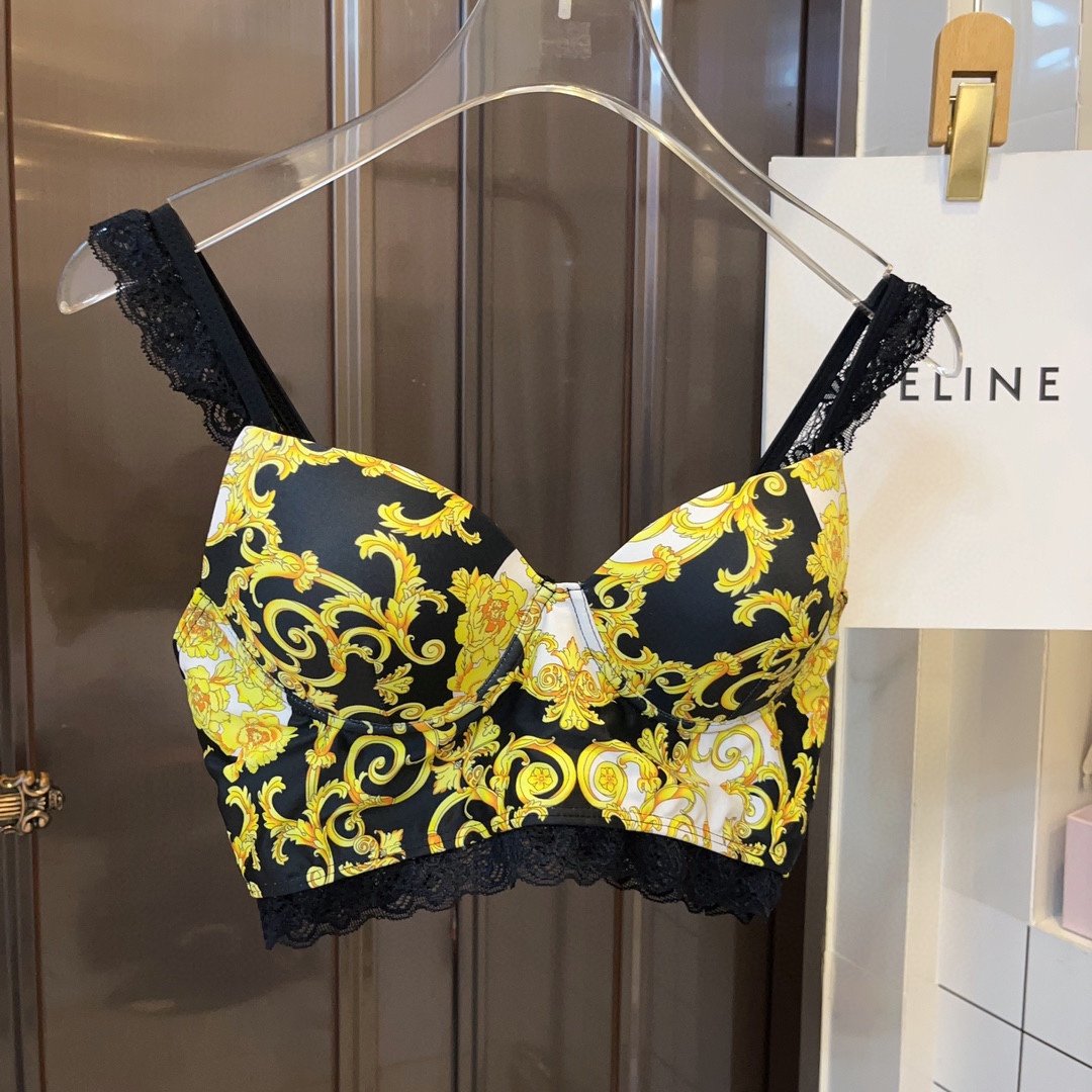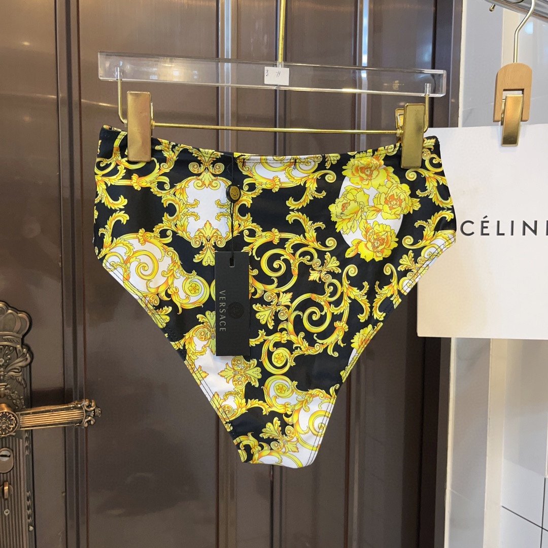 Versace Lace-Trimmed Printed Swimsuit Yellow