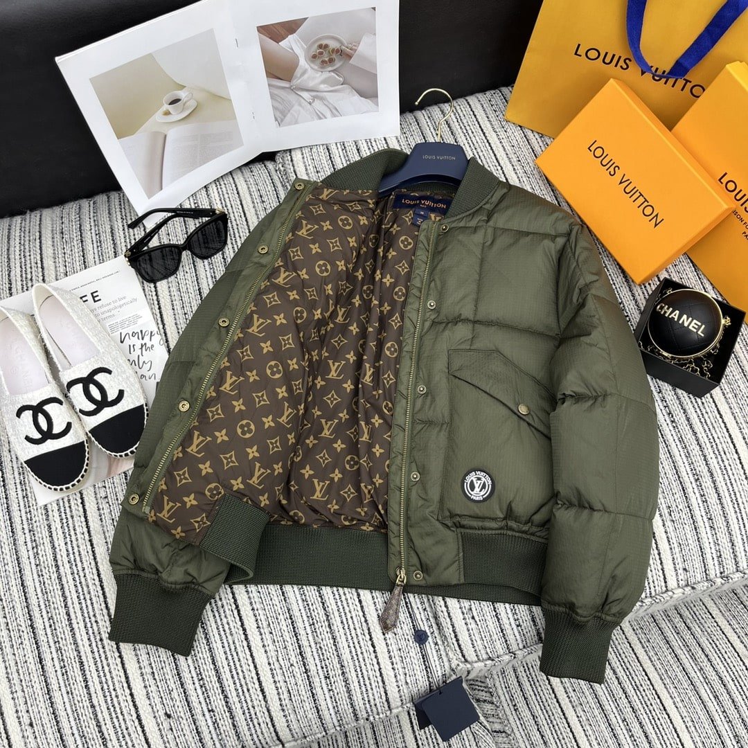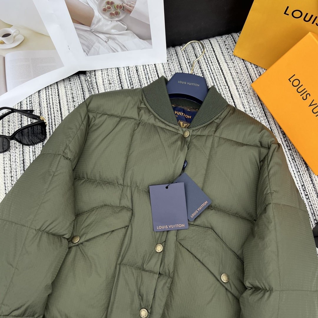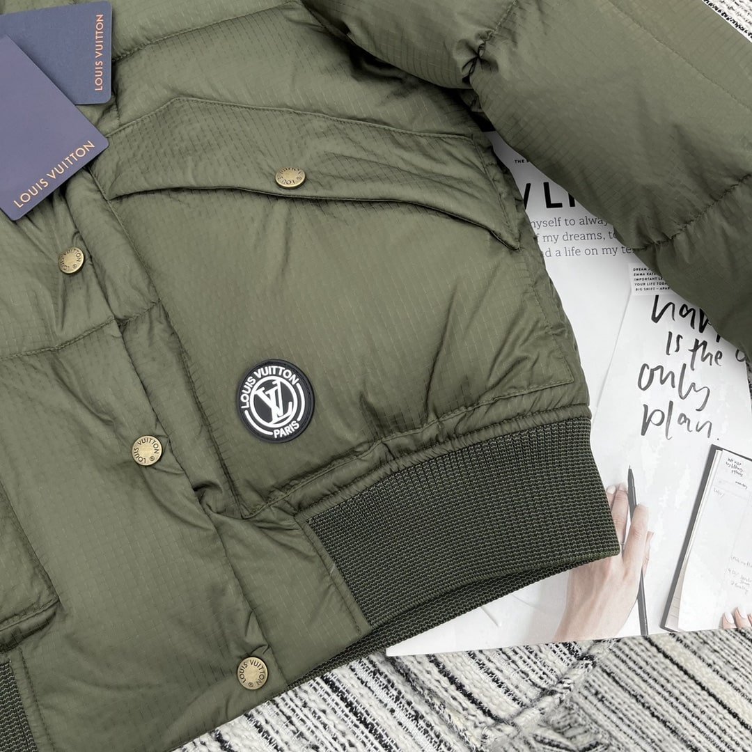 Louis Vuitton Padded Nylon Bomber Jacket Green Khaki