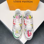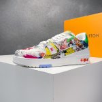 此款 LV Trainer 运动鞋采用帆布材质,印有 Louis Vuitton 漫画图案,灵感源自 2023 年春夏男装秀。这款备受追捧的鞋款由 Virgil Abloh 设计,灵感源自复古篮球运动鞋。它带有 LV 首字母、Monogram Flowers 和 #54 标志,指的是 1854 年,即品牌创立的日期。