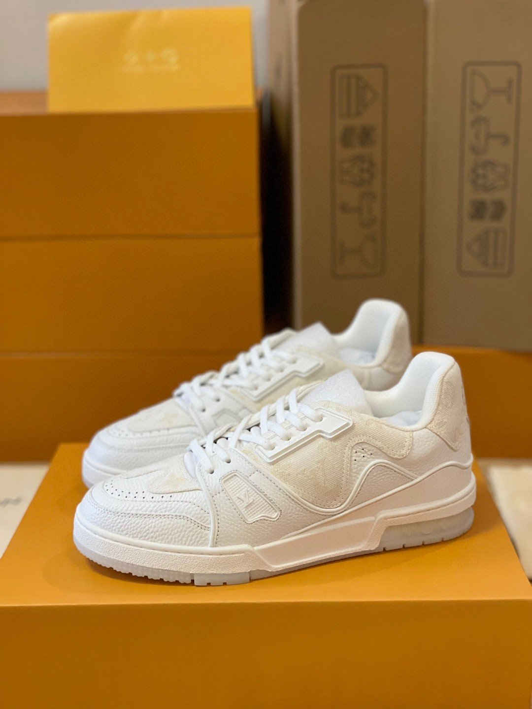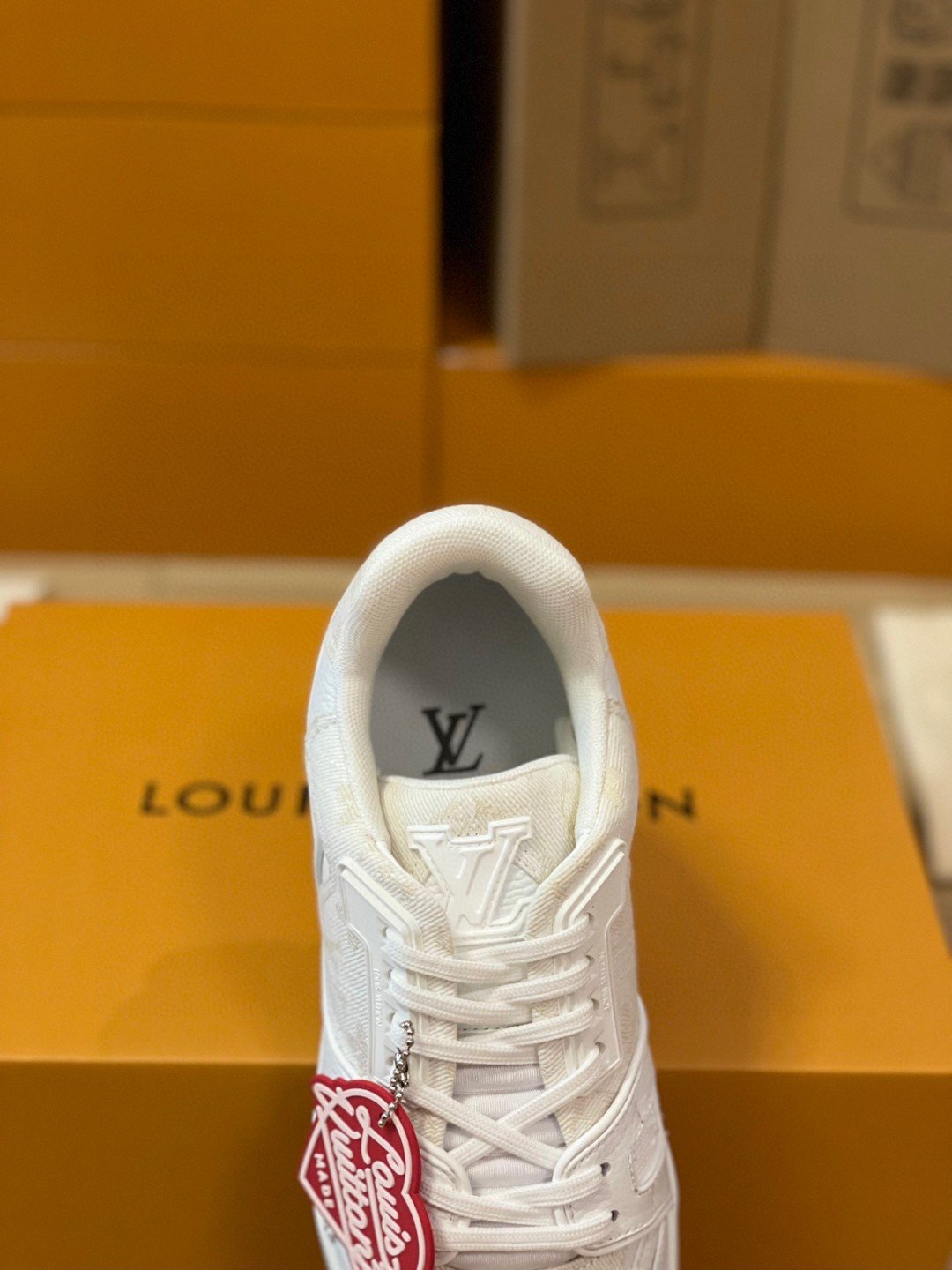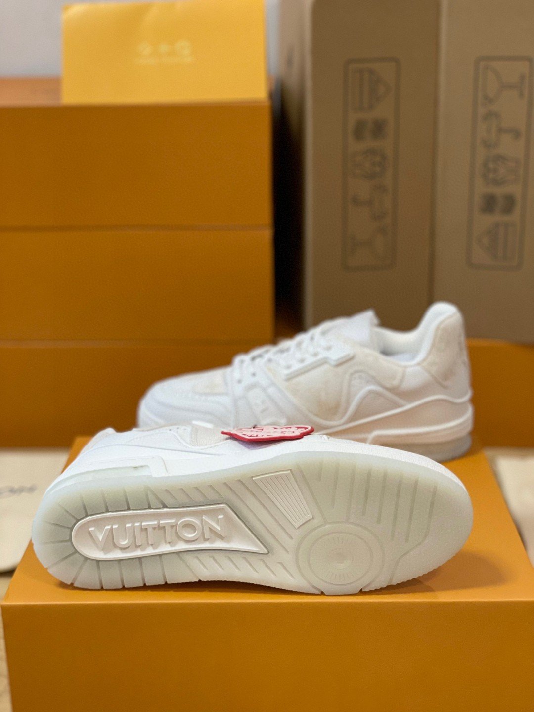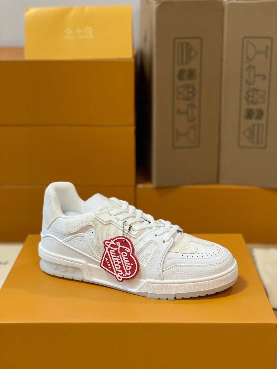 日本街头服饰传奇人物 Nigo 与 Louis Vuitton 艺术总监 Virgil Abloh 的第二次合作,重新设计了标志性的 LV Trainer 运动鞋。 Monogram 牛仔布鞋面辅以饰边,并饰有红色心形 Louis Vuitton2 橡胶贴片。 Nigo 将英国花花公子与日本街头文化本能地融合在一起,使他成为美术与时尚十字路口具有独特影响力的人物。