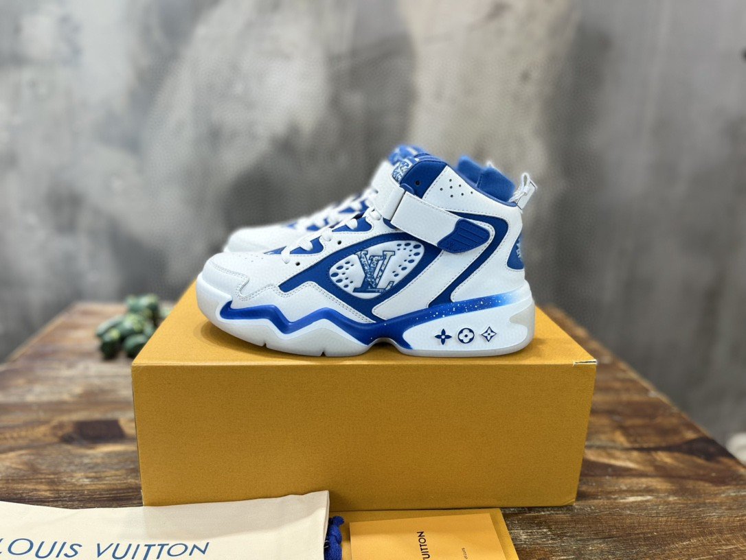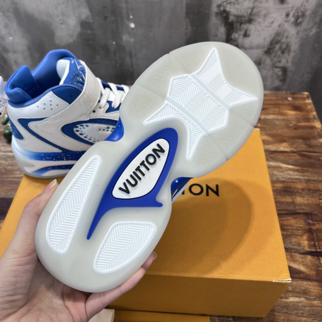 鞋舌上有 LV 篮球标志